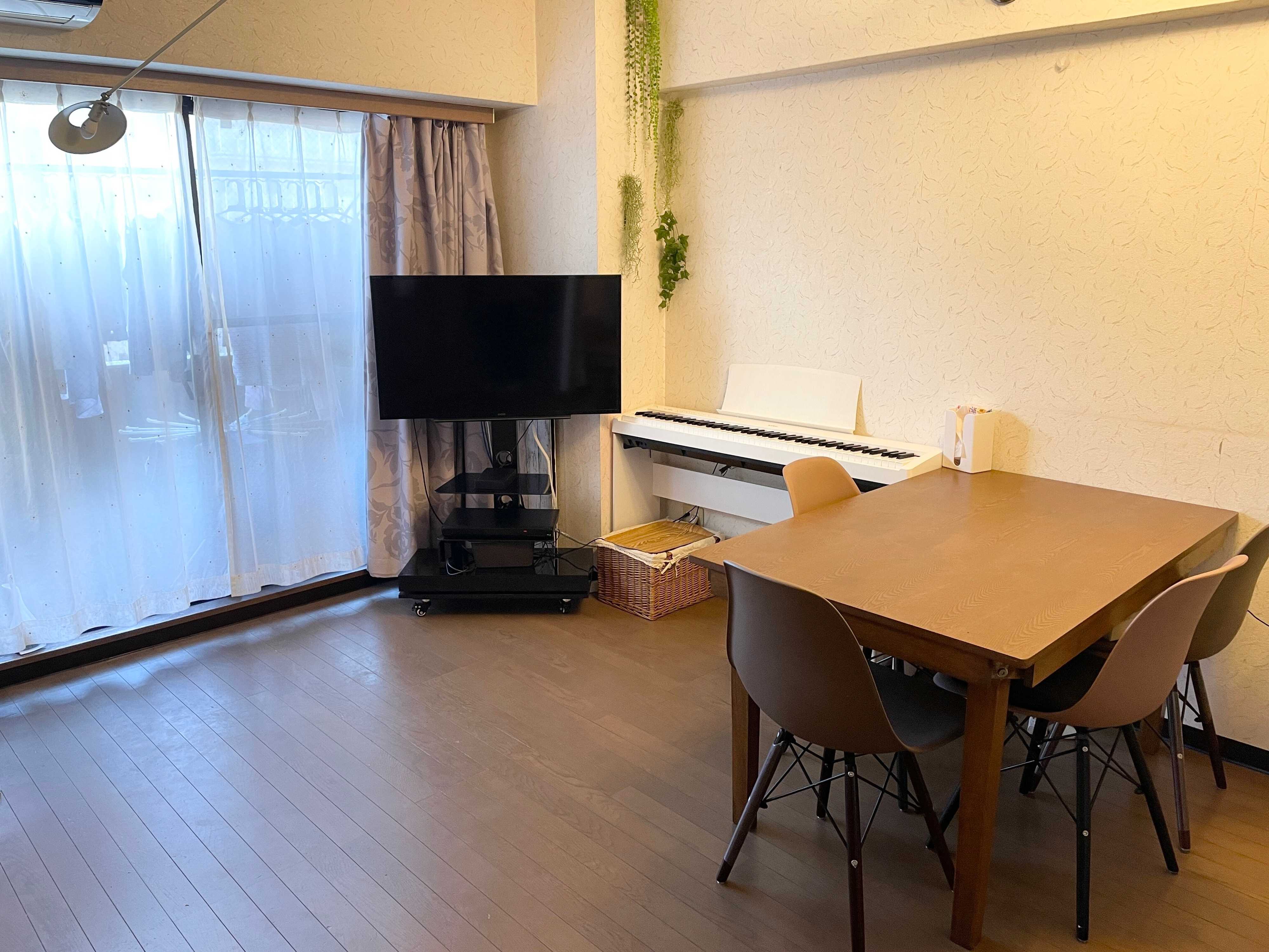 テレビと電子ピアノの間の床にコンセントを置いていたのですが、みんなそこで充電するためにスマホが床置きされ、ついでにコードやゲームのコントローラーなども「どうせ充電するから」と置かれだすように。