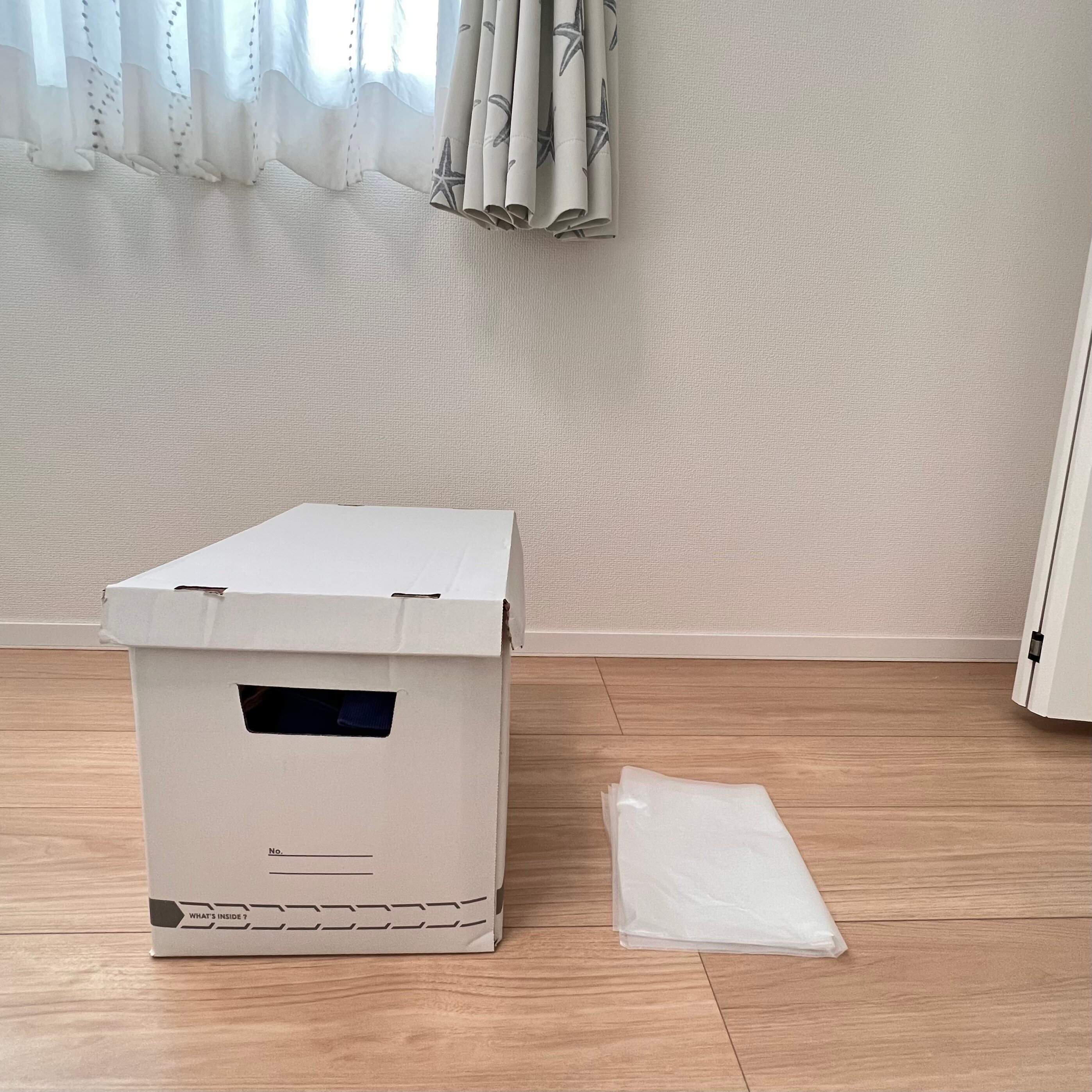 ダンボール箱1個(必要に応じて数枚)と、そのまま衣類のゴミの日に出せるゴミ袋を用意します。
