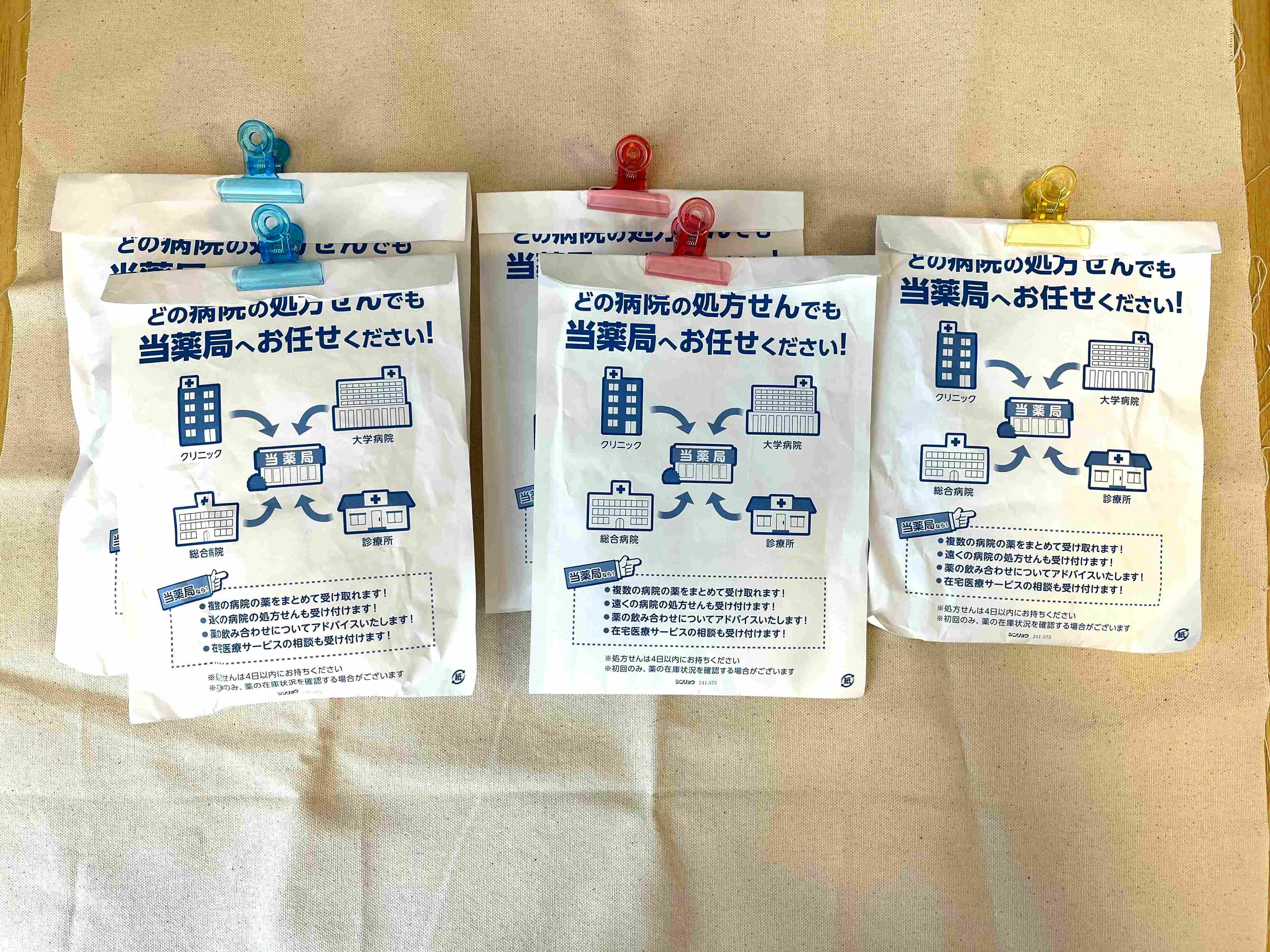 薬局にもよりますが、薬袋には患者の名前、何の薬が入っているかがかいてあります。