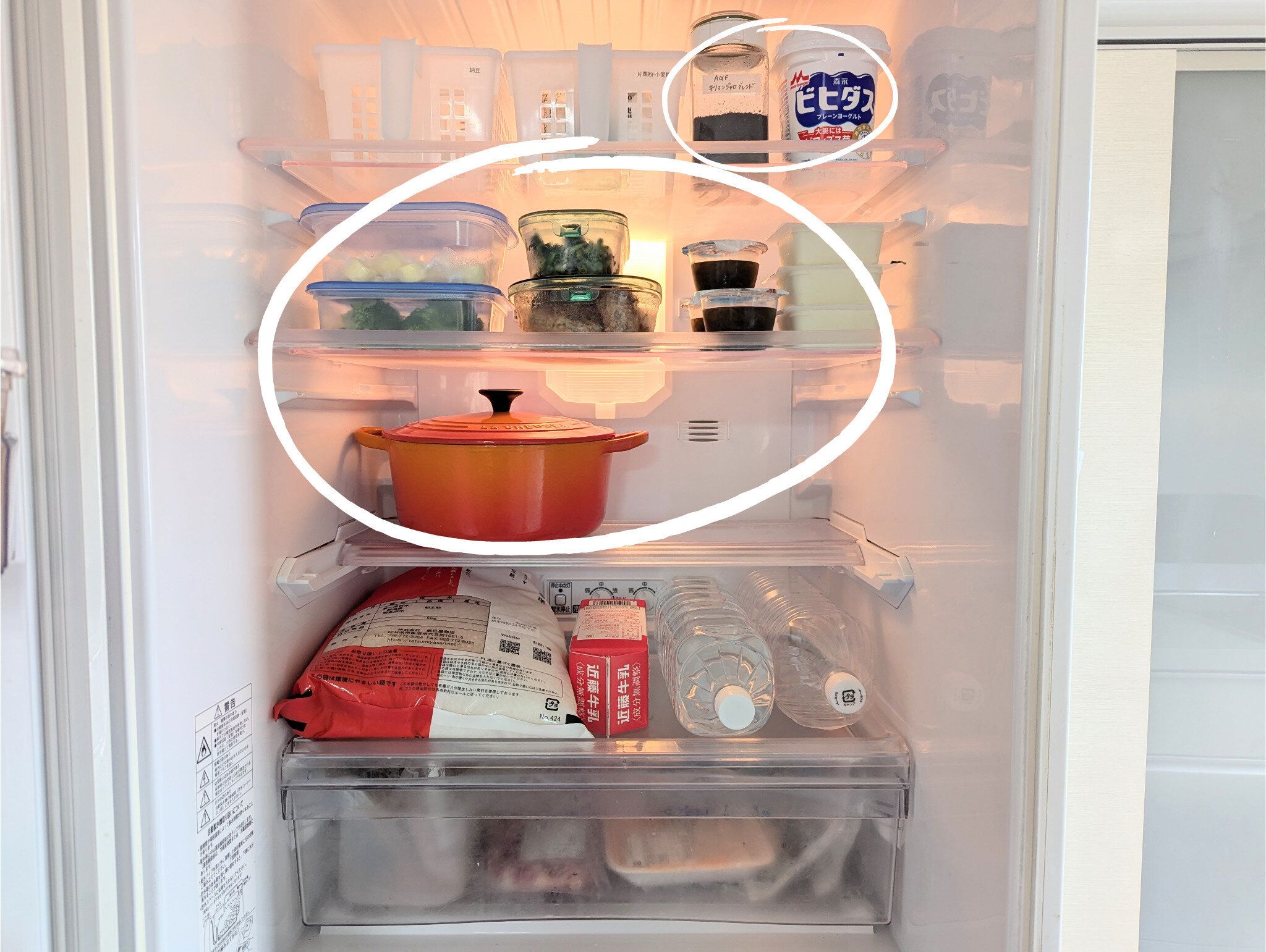 手前だけで収まらなくなってきたら、食材が多すぎるサイン。日持ちしない残り物やつくり置きを優先的に消費します。