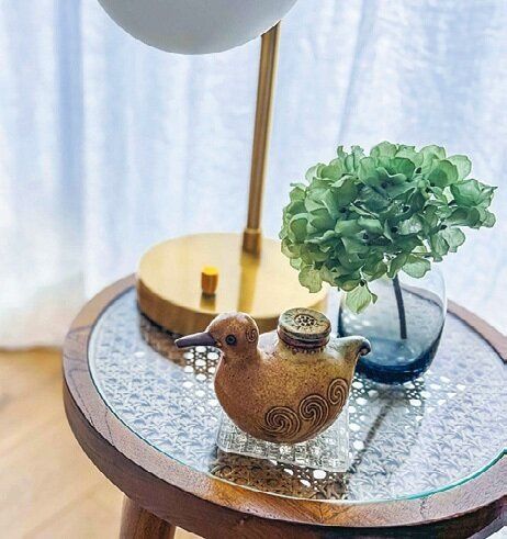 むやみに物は増やしませんが、毎日使う実用品はお気に入りの物に。「小鳥の形のしょうゆ差しは見るだけで心が和みます。室内に置いておくだけでも可愛い」。