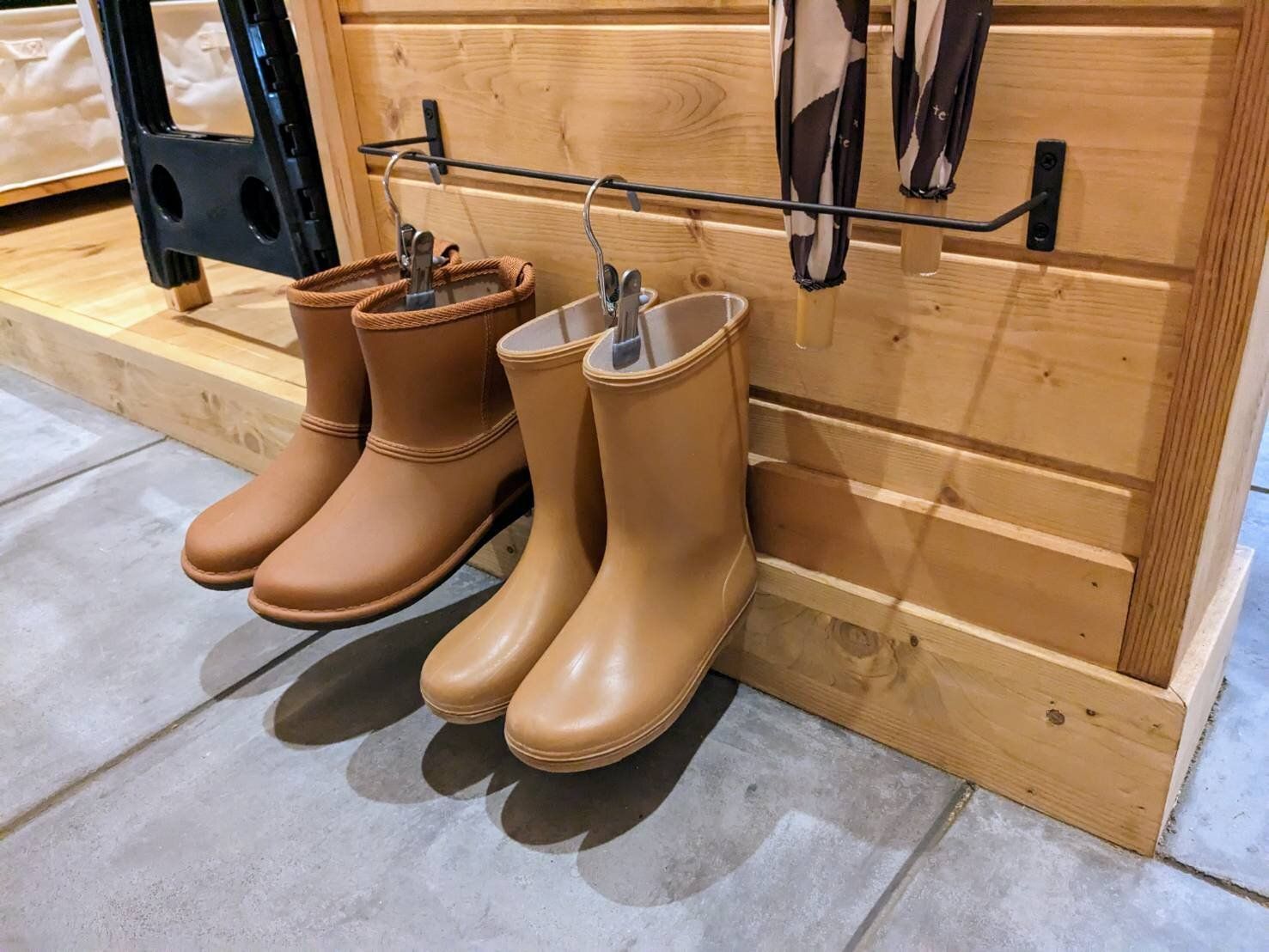 また、乾きの悪い長靴はアイアンバーとフックピンチを使って「浮かす収納」に。スプレーボトルをかけても良し、傘をそのままかけても良し!家中至る所で活躍する収納アイデアですよ。