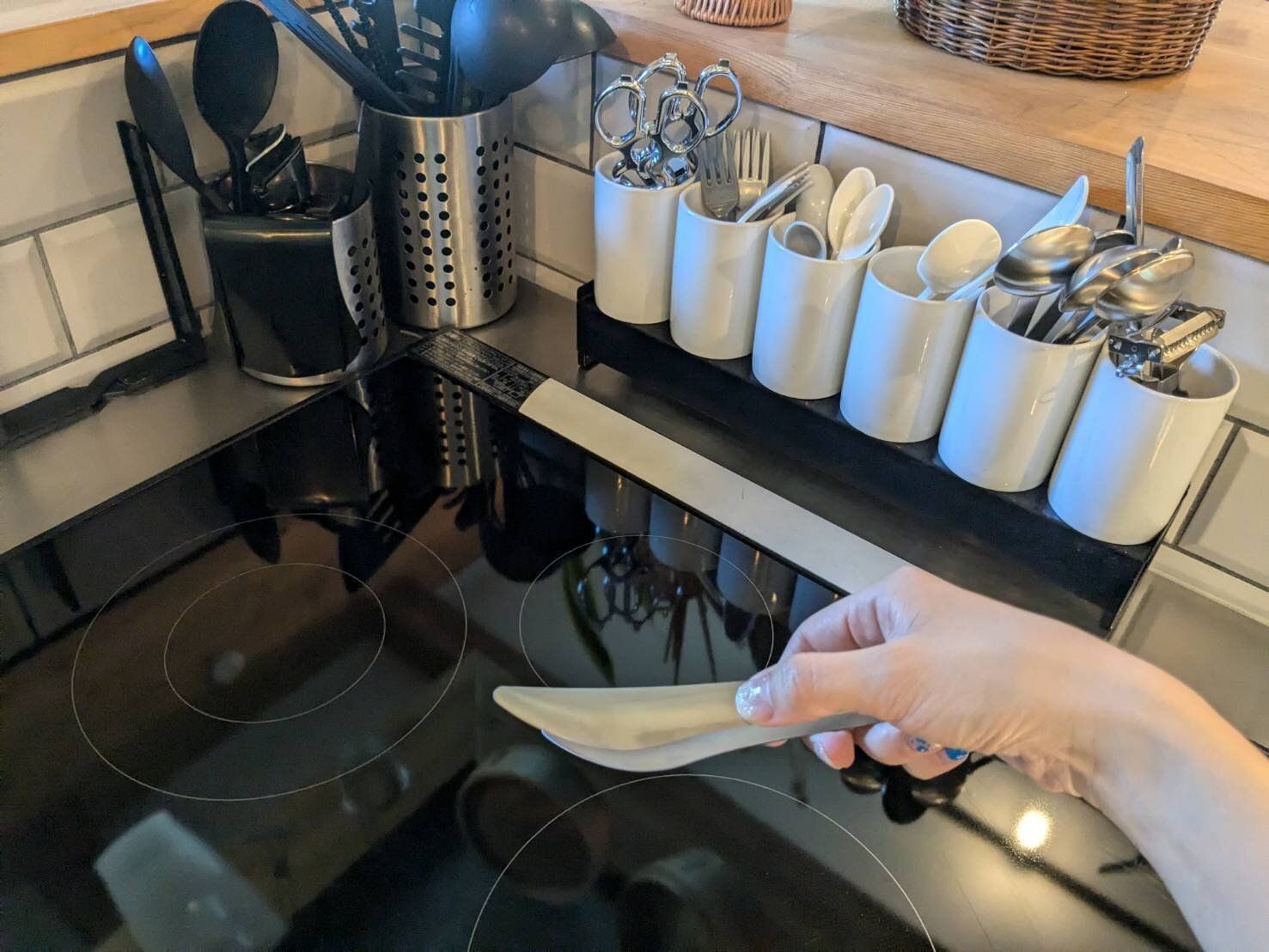 そこで、キッチンに1本、カトラリー収納スペースにも1本配置することに。両者の収納場所は、歩数にして6、7歩程度の距離ですが、それでも2本持っておくことで、「探す手間」、「頻繁に洗う手間」、「中間地点への出しっぱなし」がなくなりました。