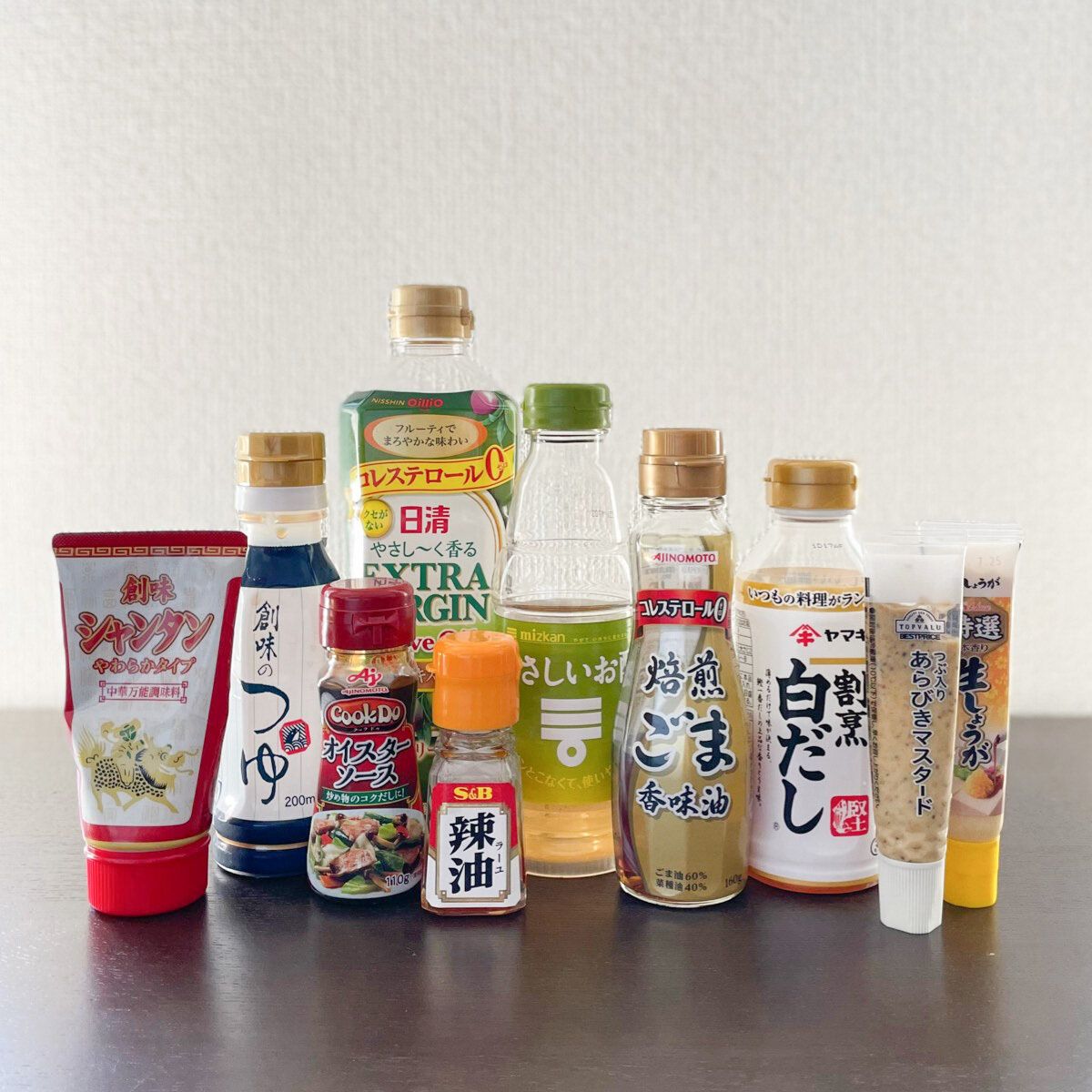 例えば我が家は〇〇の素やドレッシングなど専用の調味料は常備していません。オリーブオイルや醤油、塩、胡椒、酢、マスタードなどオーソドックスな調味料を組み合わせて作っています。