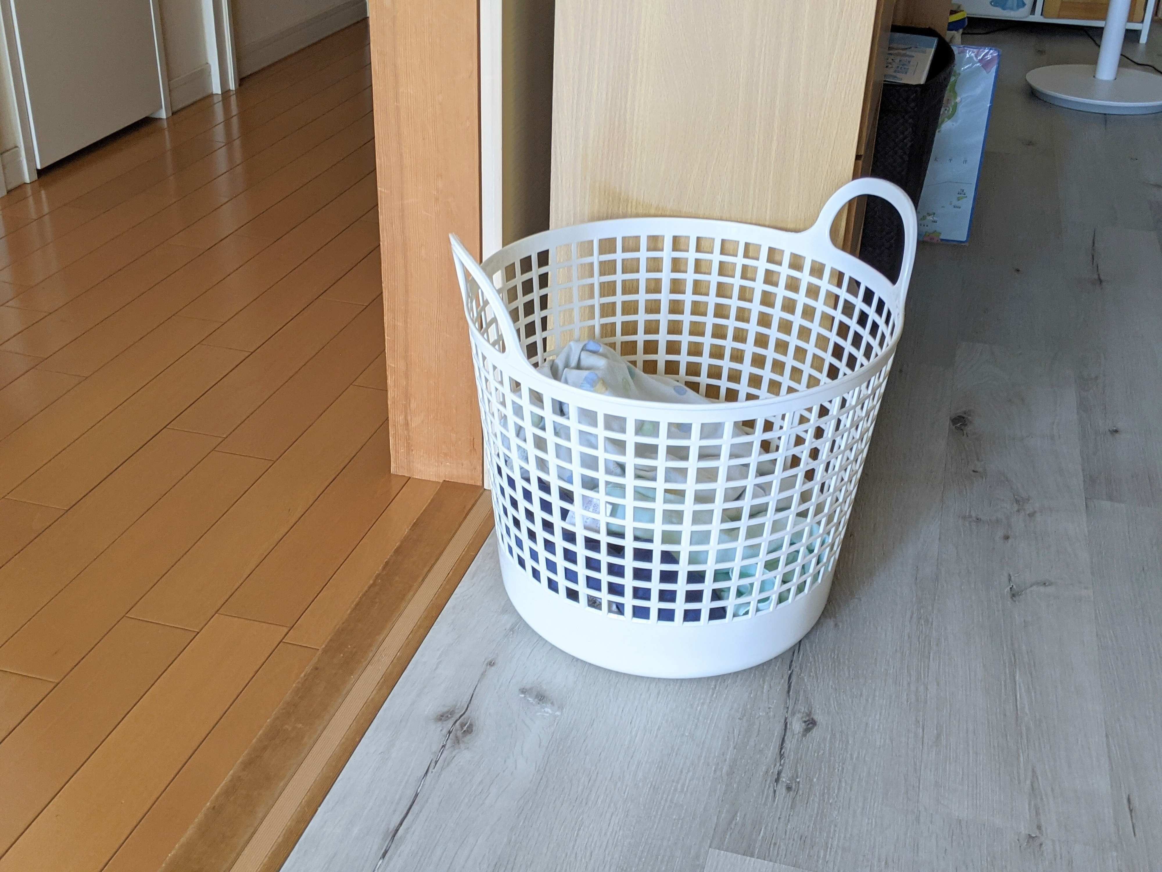 そこで、リビング横の部屋に脱いだものを入れる一時置き用のかごを用意。「ここに入れてくれればいいよ」と伝えてみたところ、5日目くらいから声を掛けずともちゃんと入れてくれるようになりました!