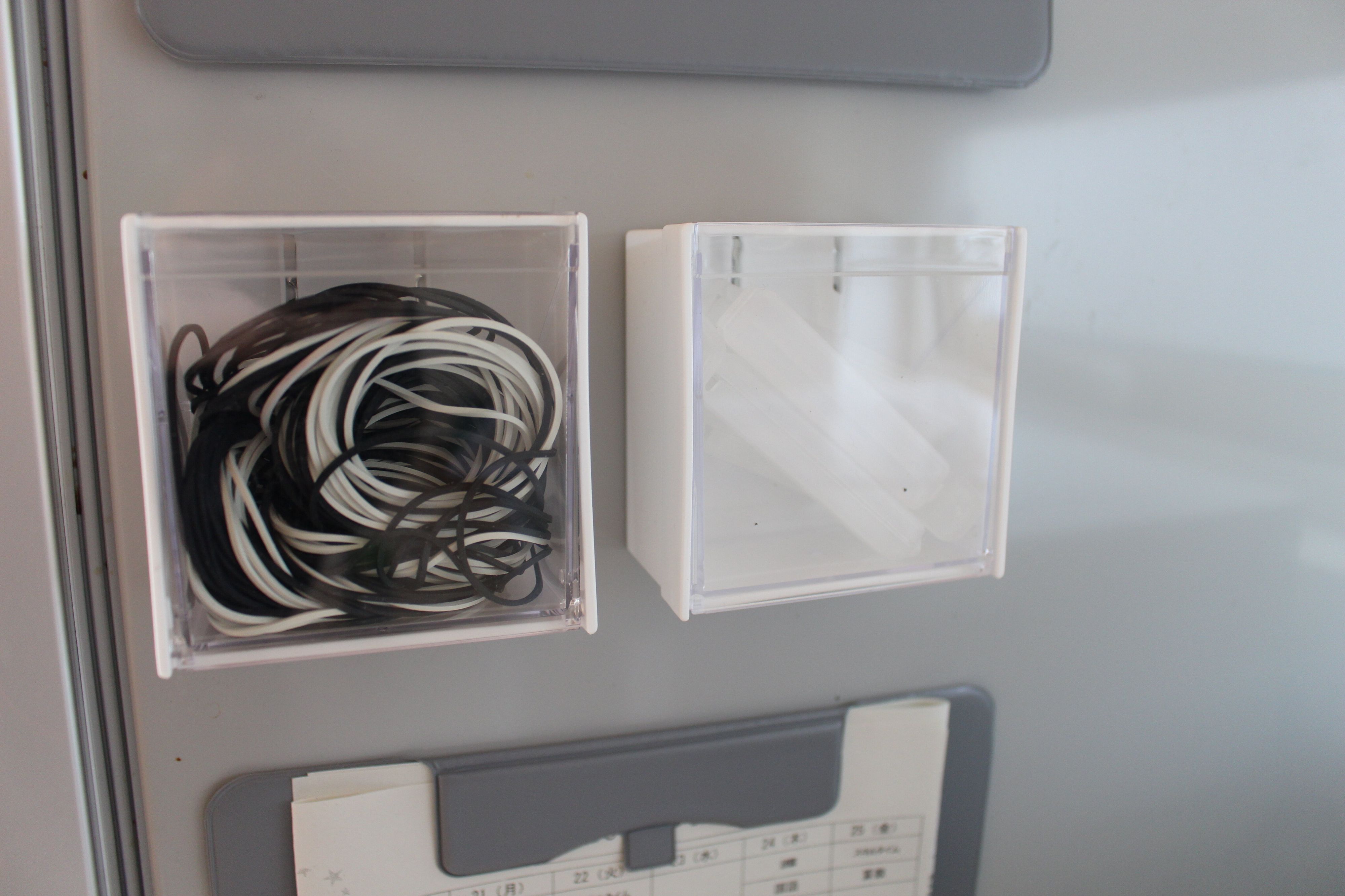 輪ゴムや食品保存に使うクリップは、使用頻度が高いものですが、これまでキッチンの引き出しに収納していました。
