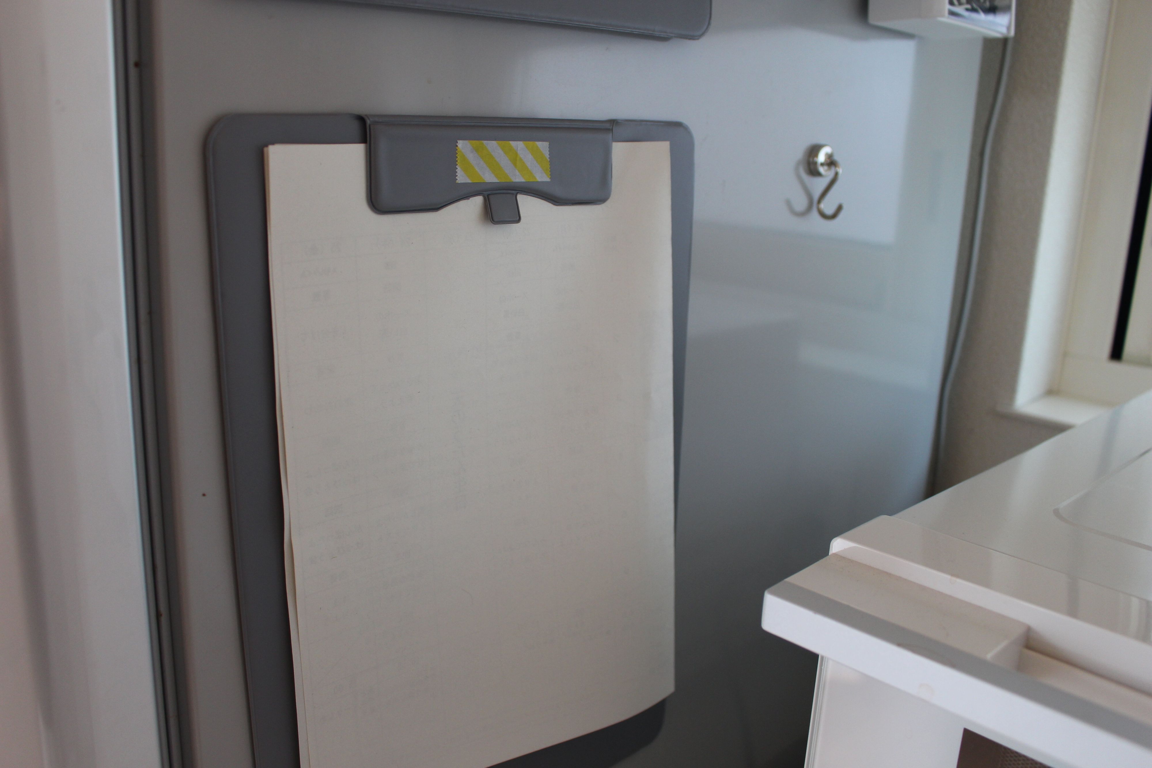 これまでも、クリップボードの穴の開いた部分にマグネットフックを引っかけてお便り等を見やすいように貼り付けていました。