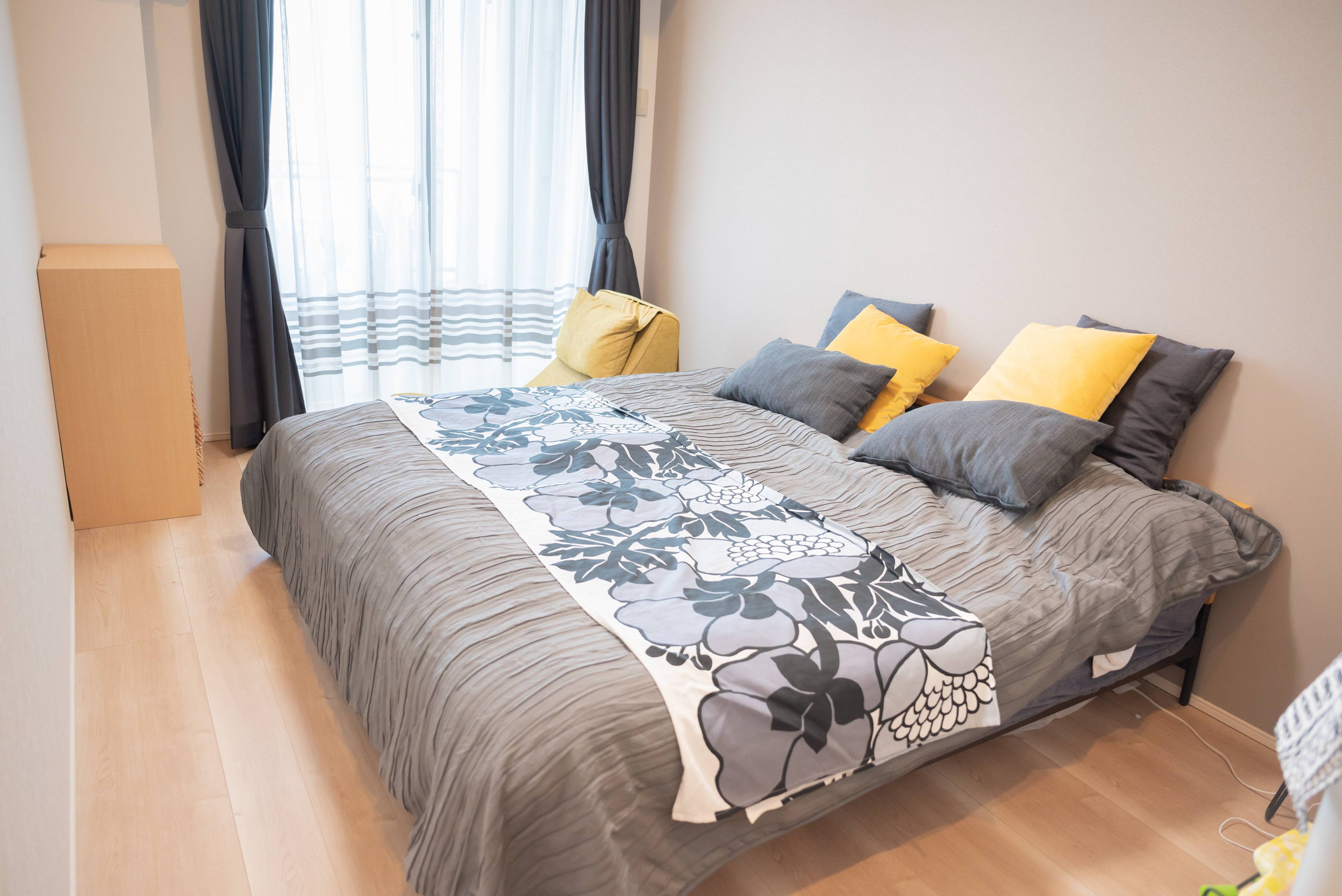 また、枕元などにインテリア雑貨を飾っていると地震の際などに危険なので、寝室にはインテリアは飾らないようにしています。