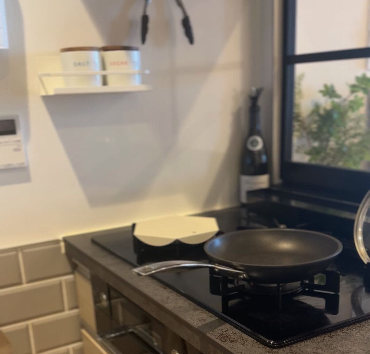 ・調味料はコンロ横のラックに配置