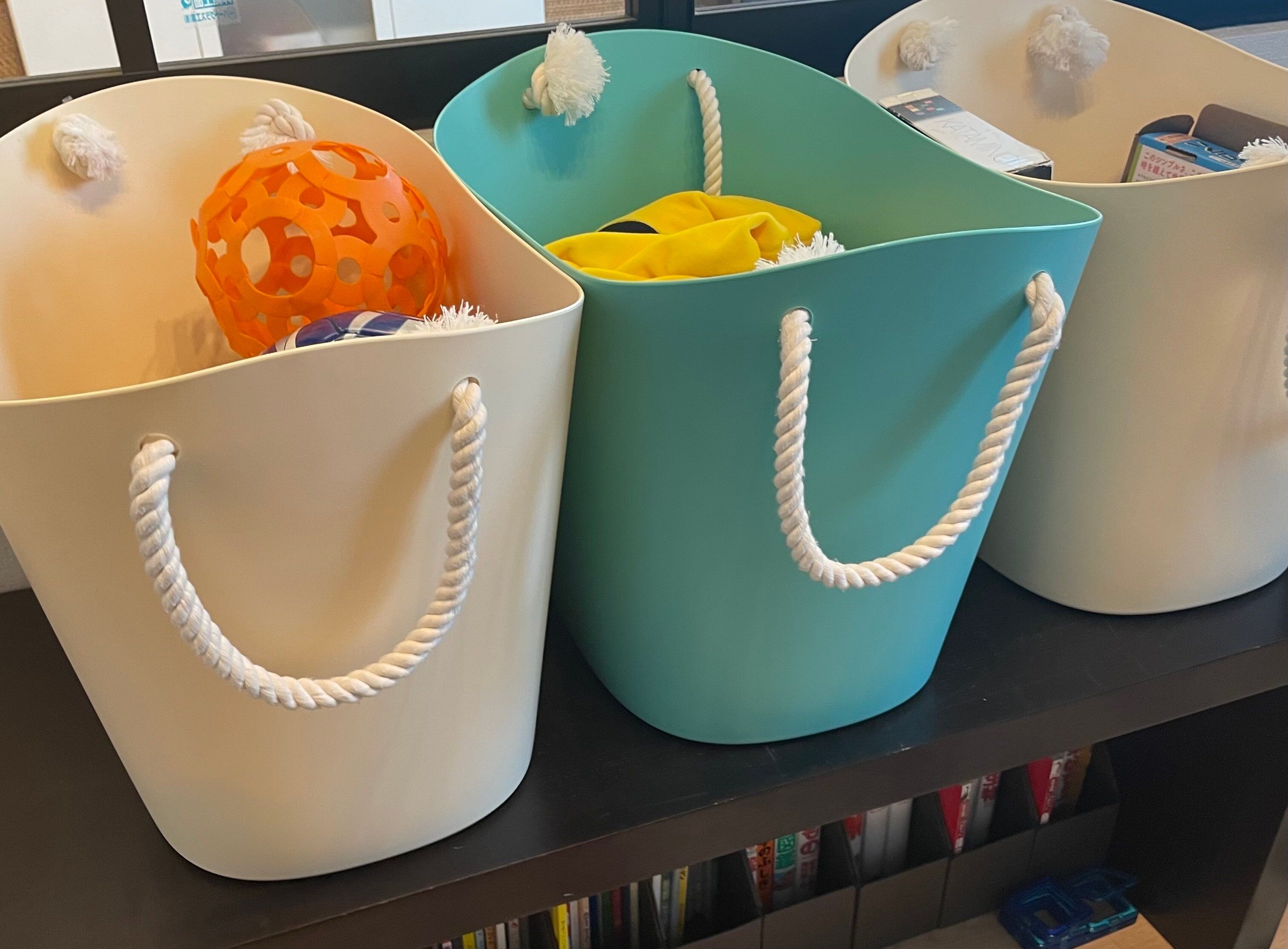 ・リビング横の棚に「名前付きボックス」