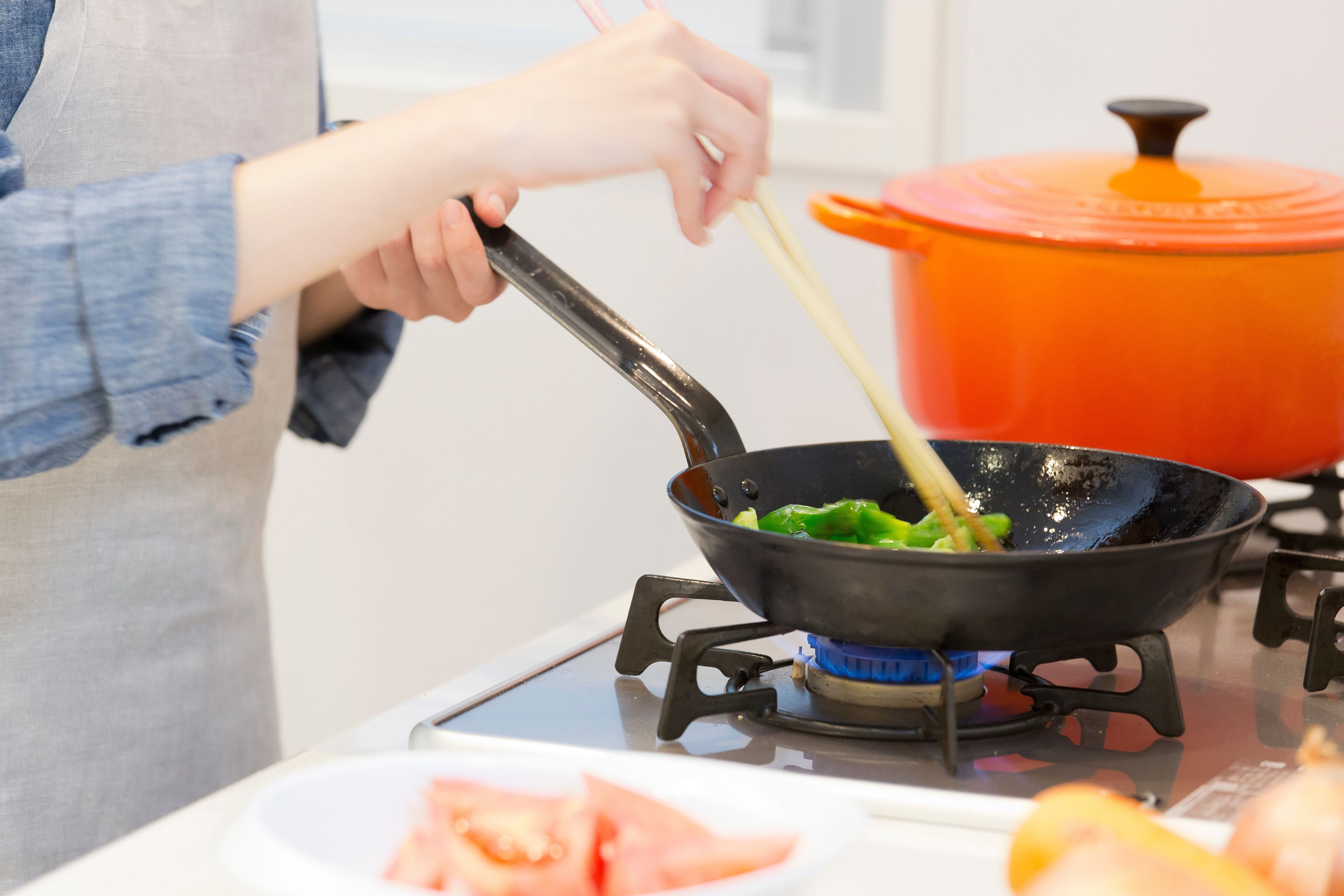 菜箸は、食事用や食材毎に使い分けることで衛生面を保ったり、加熱調理の火から手元を守ってくれるといった役割があります。加熱調理時は食事用の箸ですと火傷や破損のリスクがあるためトングで代用。盛り付けや和え物をつくるときに食事用の箸を使っています。