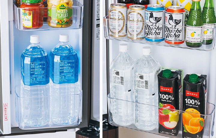 寝かして入れるとコロコロ転がる一升瓶。ドアポケットにスッキリ収まれば、取り出しやすさもアップします。もちろん2ℓペットボトルだってすっぽり!