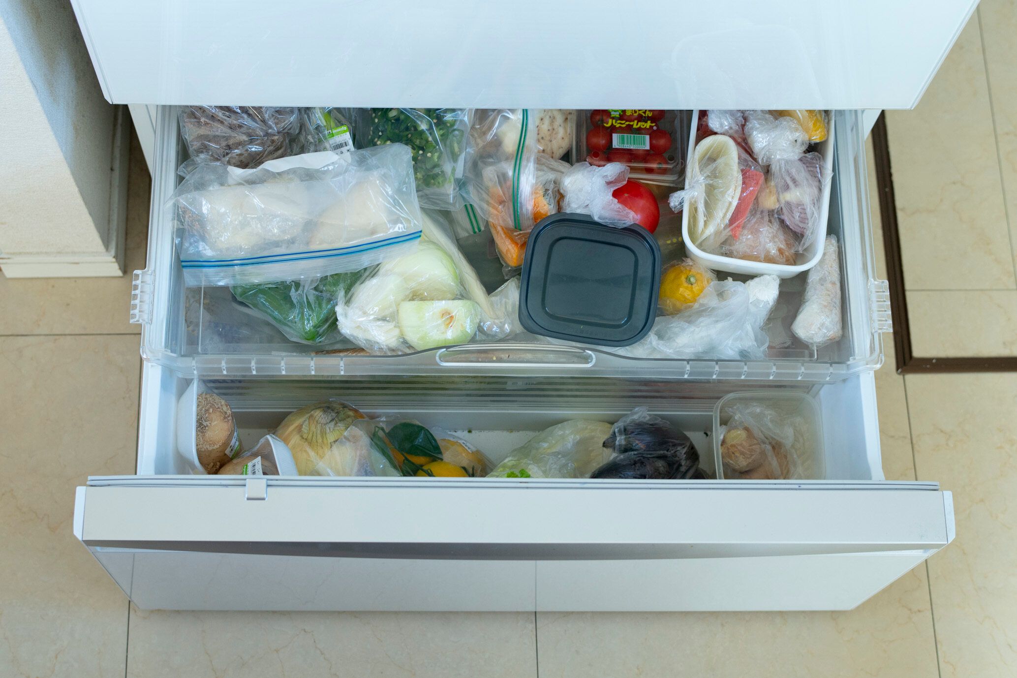 「これから撮影用の食材が届くから、今は空きがあるほう」という野菜室と冷凍室。ここでも収納はざっくりといいますが、食材をむだにすることはないそう。拝見すると、食材が重ならないように保存されていて、ひと目でどこに何があるか分かるようになっていました。
