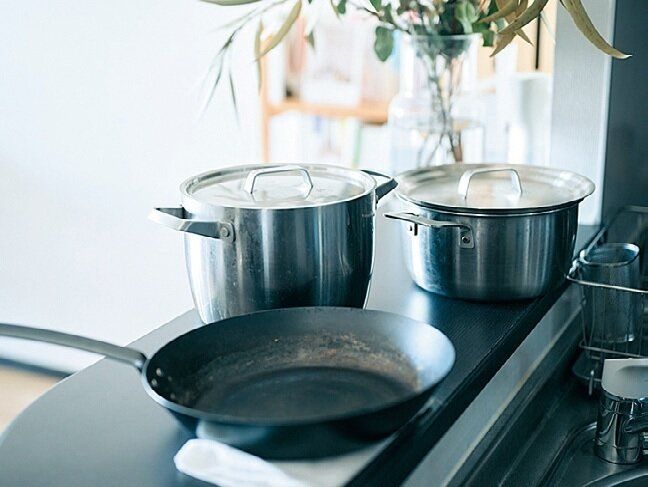 だし巻き玉子もフライパンで作るし、汁ものや煮ものは2つの鍋がフル稼働。この他に土鍋とホットプレートがあるので充分にバリエがつけられます。