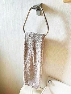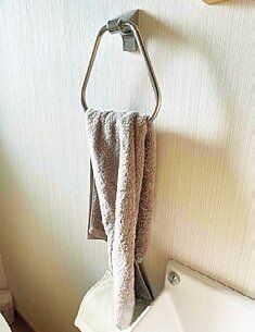 タオルの左右の端を内側に折って掛けただけで、こんなにスッキリするとは!使ってもずれにくいという効果もあってうれしい。