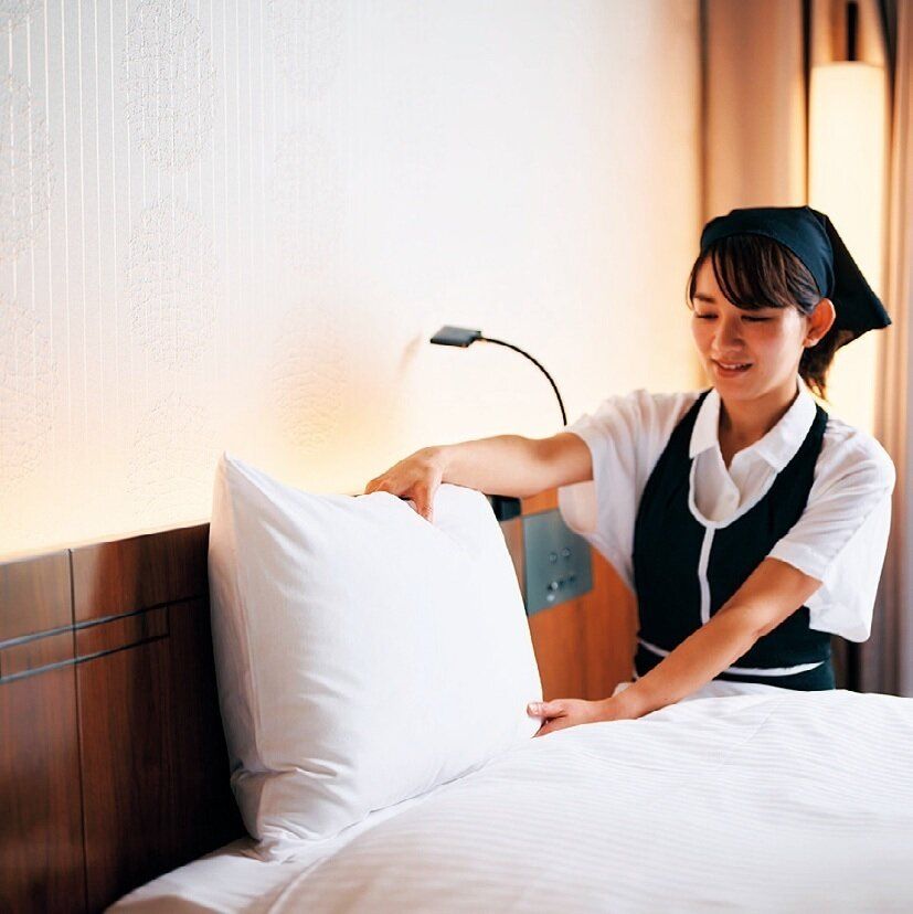 一流ホテルの空気感をつくり上げる一端を担うのがクリーンクルーの皆さん。ホテル清掃は、時間との勝負。限られた時間で前泊者の痕跡を消し、匂いや汚れなどは一切残さず、未使用同然の部屋に戻すことが大切。さらに連泊の場合は、基本お客さまの持ち物を触ったり、捨てたりせず現状復帰が求められます。「お客さまにとってホテルは、滞在先のわが家のようなもの。自宅でくつろぐように、居心地の良い場所でなければなりません」と田原さん。最小限の時間と労力で気持ちいい部屋に整うホテル清掃テクをぜひおうちで真似してみてください。