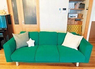 ソファを整えるほんの数秒で、部屋全体が整って見えるように。とても簡単な片づけ法で続けたいです!