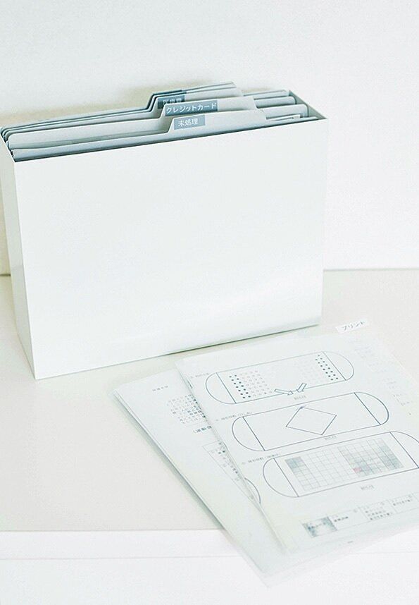 学校のプリントはクリアーファイルに入れ、新しい月の物が届いたら過去の物は処分。確定申告に必要な書類など、長期保管の物は、ファイルボックスにまとめて年に一度見直します。