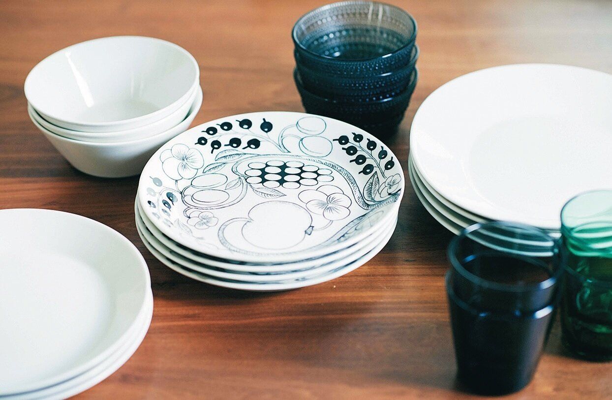 食器棚にあるのは、シンプルな形で色数も少なく、和洋問わず使い回せる精鋭ばかり。使いやすそうと思って買った物でも、出し入れするのが面倒な重い器や土鍋は処分しました。
