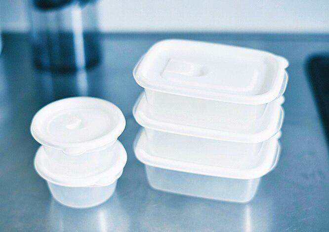 保存容器は劣化したタイミングで買い替え。持っていた青いふたの物は処分して、白いふたの物を選び直しました。収納の中が真っ白で気持ちいい!