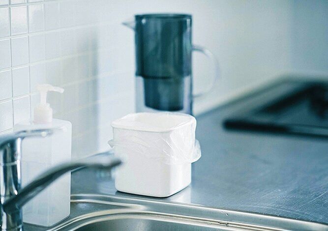 調理中の生ゴミは、ニオイのつきにくいホーロー容器へ。見た目も大きさもちょうどよく、食器と一緒に洗っておけば衛生的です。