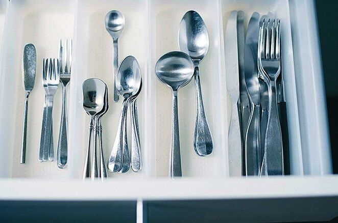 カトラリーは「イッタラ」の「チッテリオシリーズ」など、シンプルな物を少しずつ。好きな物があれば、ほかに目移りもなし。