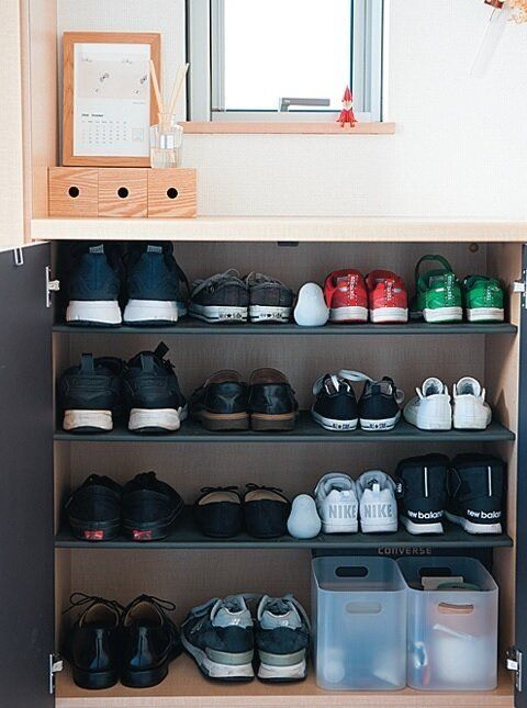 家族の靴は、靴箱の容量を基準にして「とにかくパンパンにしない」がルール。目当ての靴をすぐ取り出せるのはもちろん、通気性がアップ+掃除がラクになり、お気に入りを大切にはけるように。
