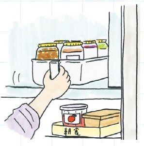 みそ、梅干し、使いかけの小麦粉、びん詰のジャム、缶ビール、あまり使わない調味料やドレッシング、朝食セットなど。