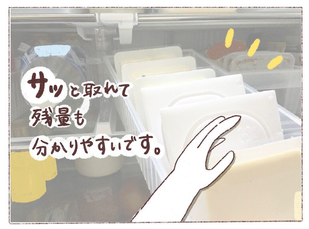 簡単に取り出すことができますし、残量もパッと見ただけでわかるので1週間の献立が立てやすいです。