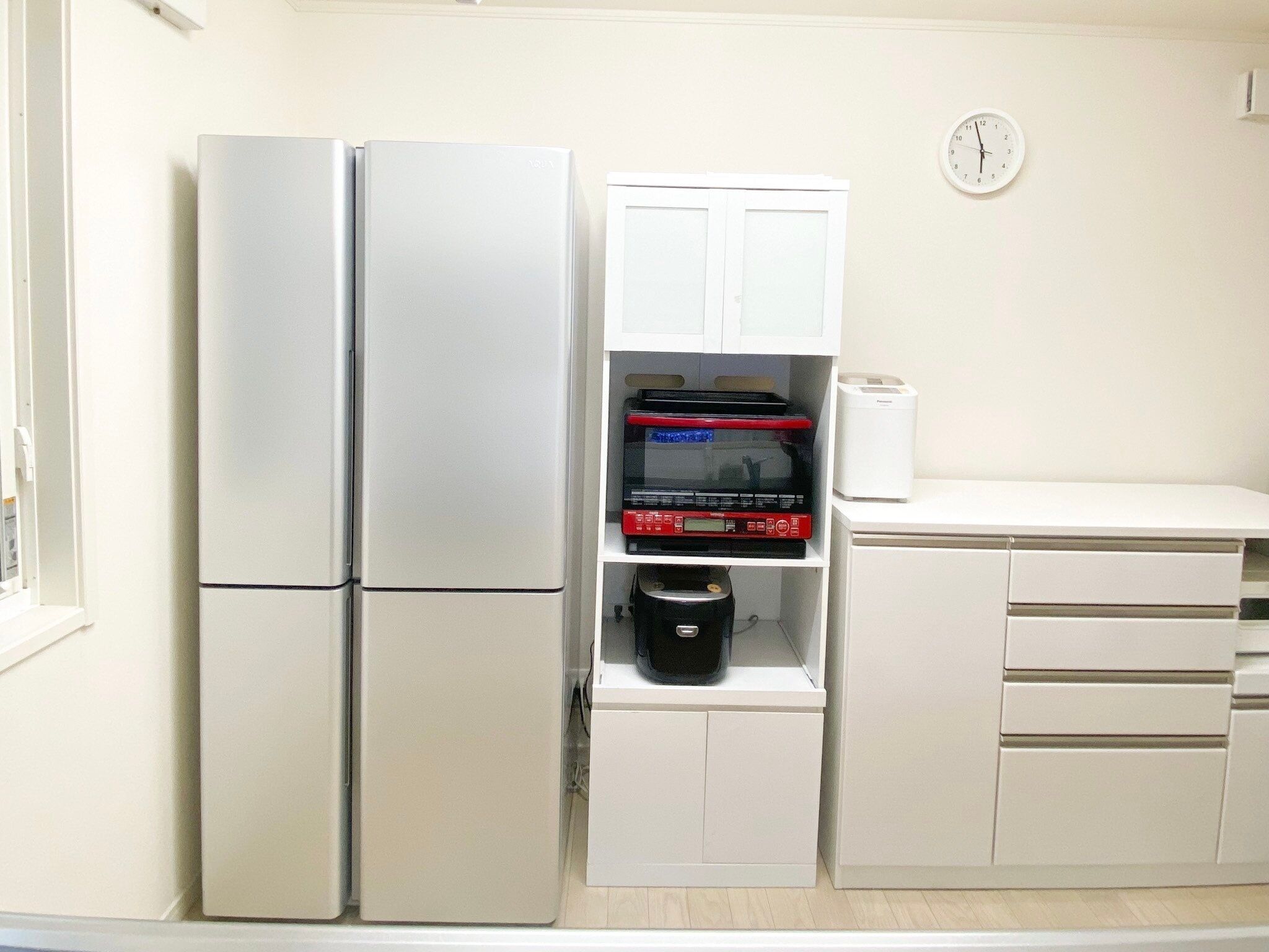 そこで選んだのがAQUAの冷蔵庫。容量には本当に満足しています!作ったその晩のおかずも入り、鍋ごと入れても余裕があります。