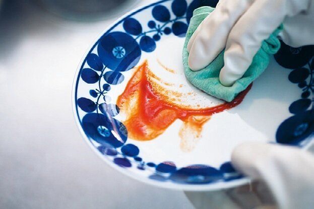 皿の油汚れはウエスで拭き取ってから洗うと、排水口のヌルつきが減る