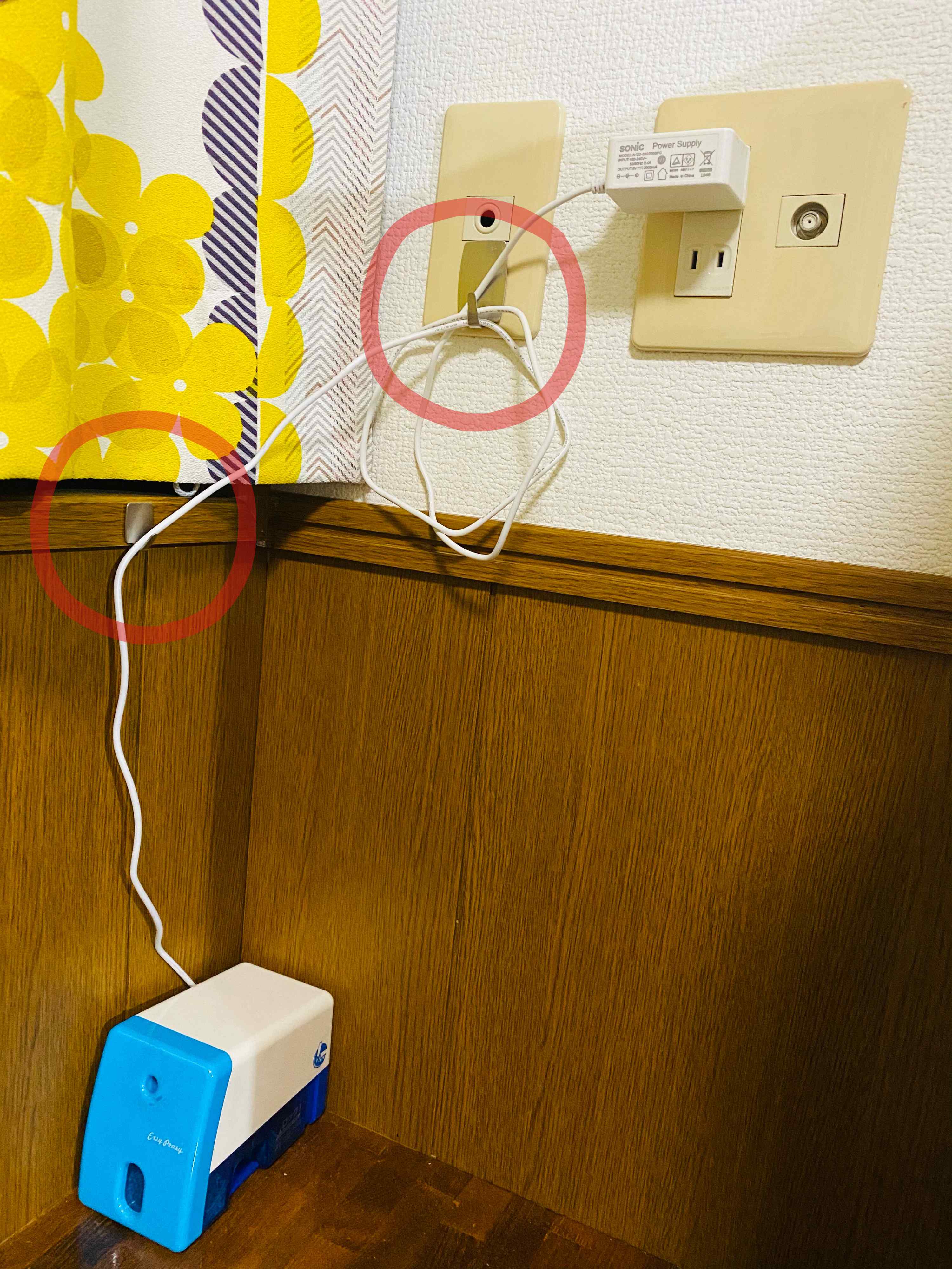 画像のようなコードをまとめる役割の他にも、スプレーを引っ掛ける、お掃除道具を引っ掛ける、バッグをかけるなどなど、あるとなかなか便利です。