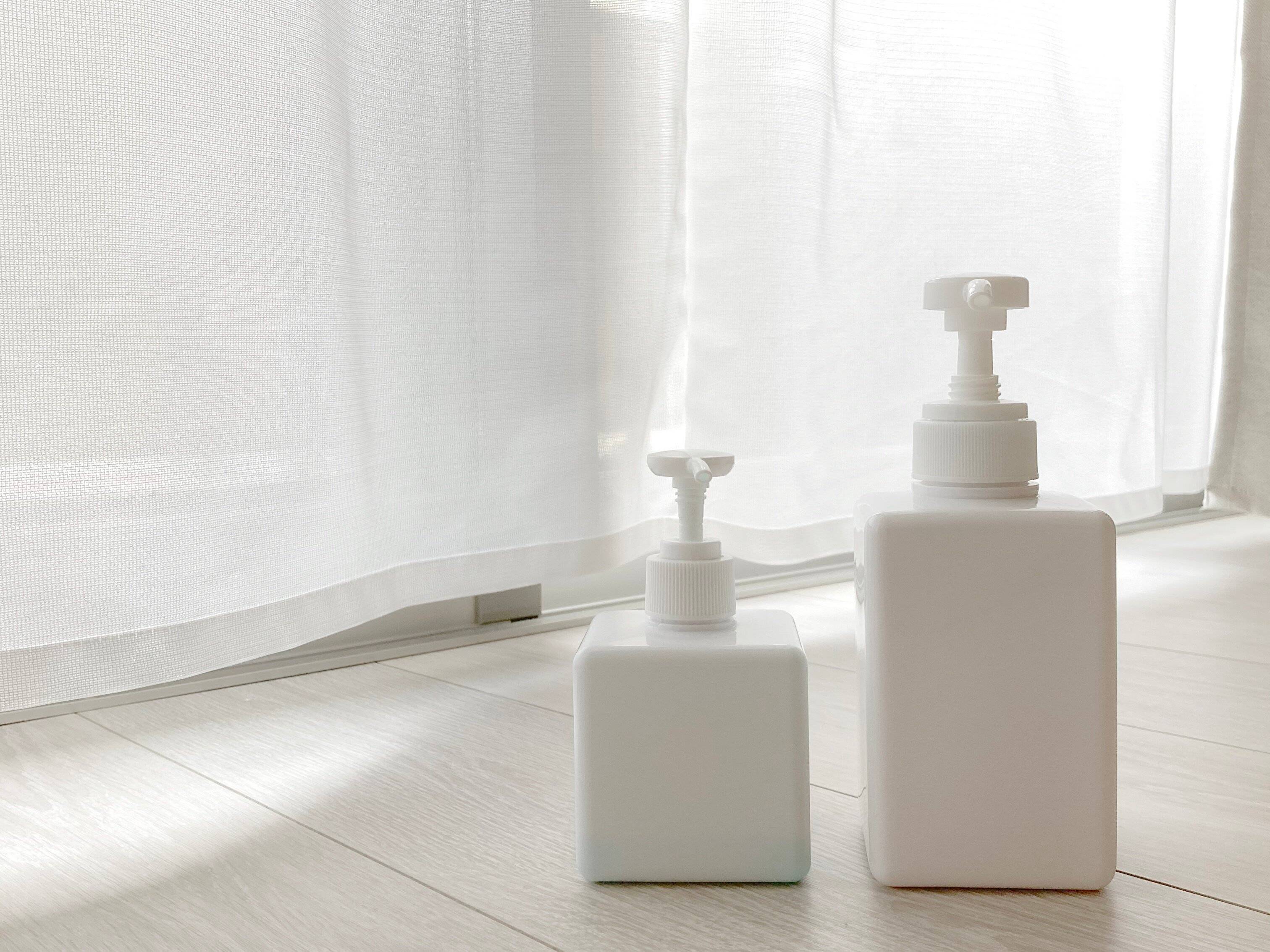 たとえば画像の詰替ボトルは、以前大きい方を選んで失敗しました。詰め替えの頻度を低くしたくて大きな方を選んだのですが、ノズルも太いためか液だれしてしまったのです。さらにワンプッシュで出てくる量にもかなり違いがあるため、小さいボトルに変更してからの方が詰め替えの頻度も減るという結果に。