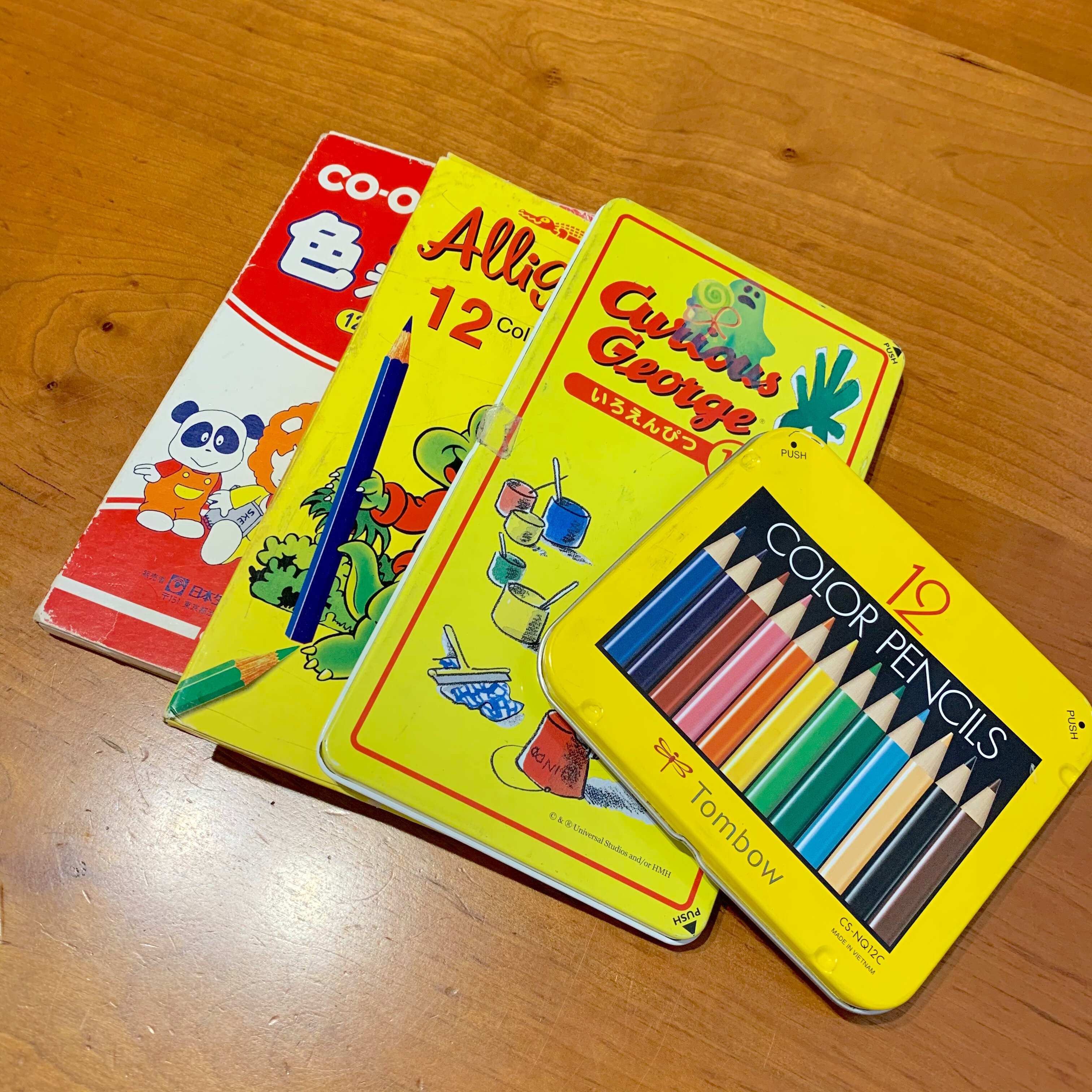 色鉛筆もよく散らかっていました。色鉛筆をよく使うダイニングテーブルと収納場所が離れており、片づけにくかったのだと思います。さらに、色鉛筆を1本ずつケースに戻すことも、子どもたちには難しいことです。我が家のように色鉛筆が何セットもある場合は、どのケースに戻せばよいのか分からなくなってしまいます。