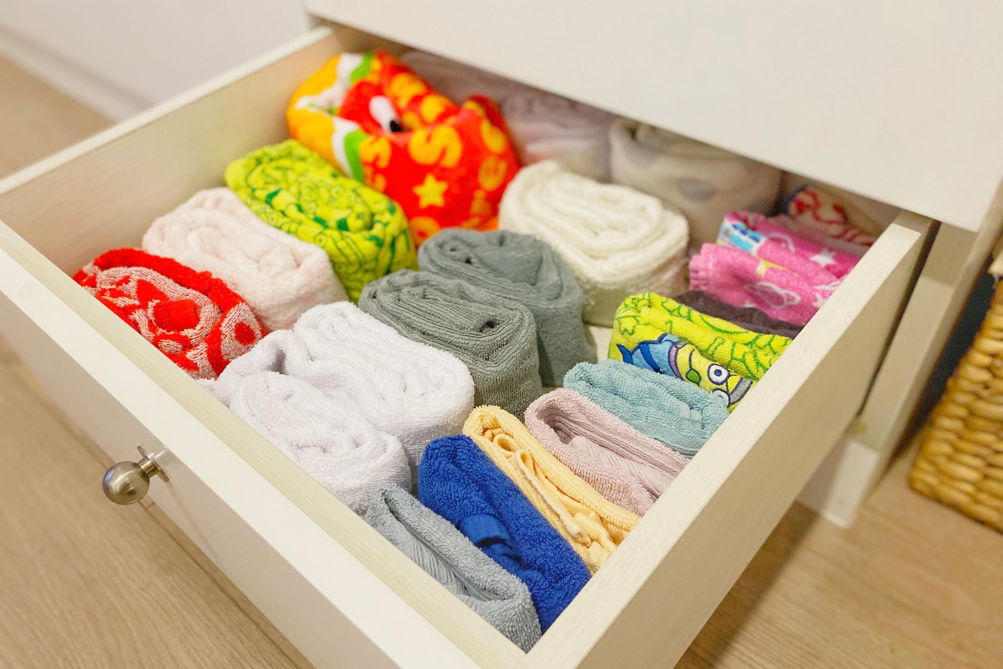 我が家には頂き物のタオルが大量にあります。なんと引き出し1.5段分にぎっしり詰まっています。これを一年で使い切るのは難しいので【今年使う枚数を決めて】一番下の引き出しに収納することにしています。年が明けたら上段のタオルを下段に移動させて一年間使い倒します!ちなみにハンカチなどの共有ではないタオル類は家族個人の物なので手放す基準は異なります。