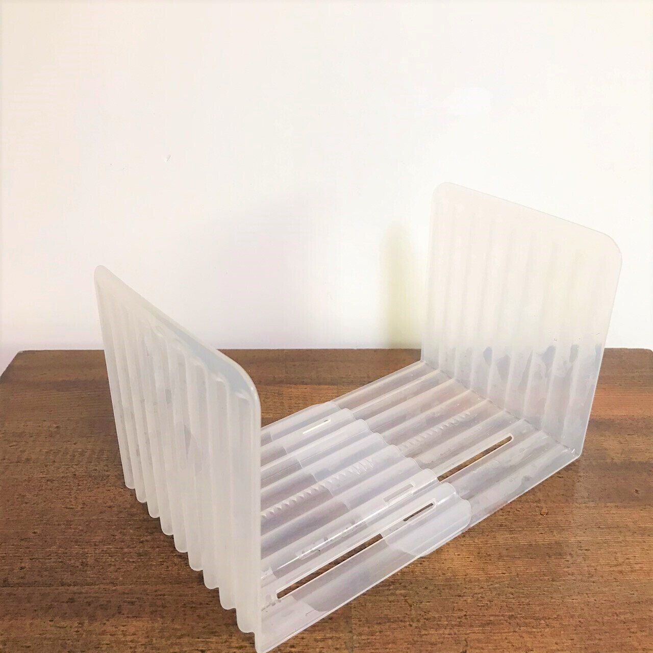 冷凍庫収納が劇的に変わるおすすめグッズです。L字スタンドとしても使え、2つ組み合わせるとスライドするスタンドとしても使えます。ストックが減ってきたらスライド部分を縮めることで、食品が倒れるのを防いでくれます。