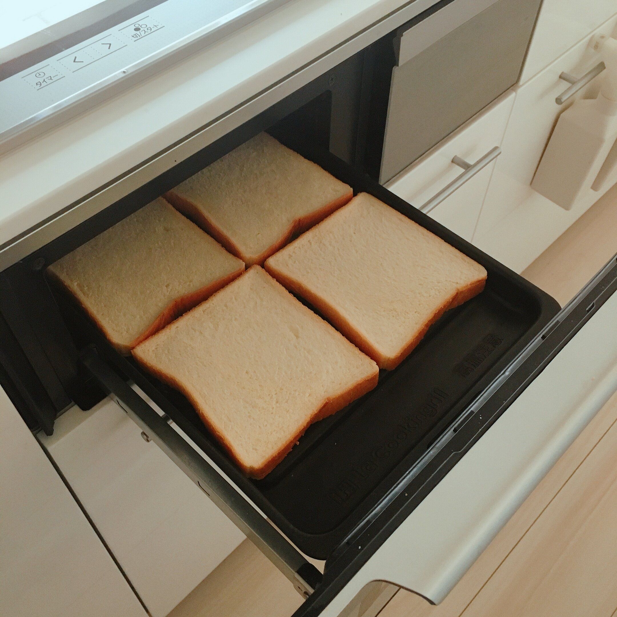 オーブントースターを使う目的が「パンをトーストすること」だけだったので、IHについているグリルでトーストしてみることにしました。お手入れも簡単、しかも一気に4枚焼けるのでとても便利です。