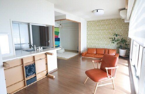 <食事後、座卓はカウンターの下に立ててすっきりと>