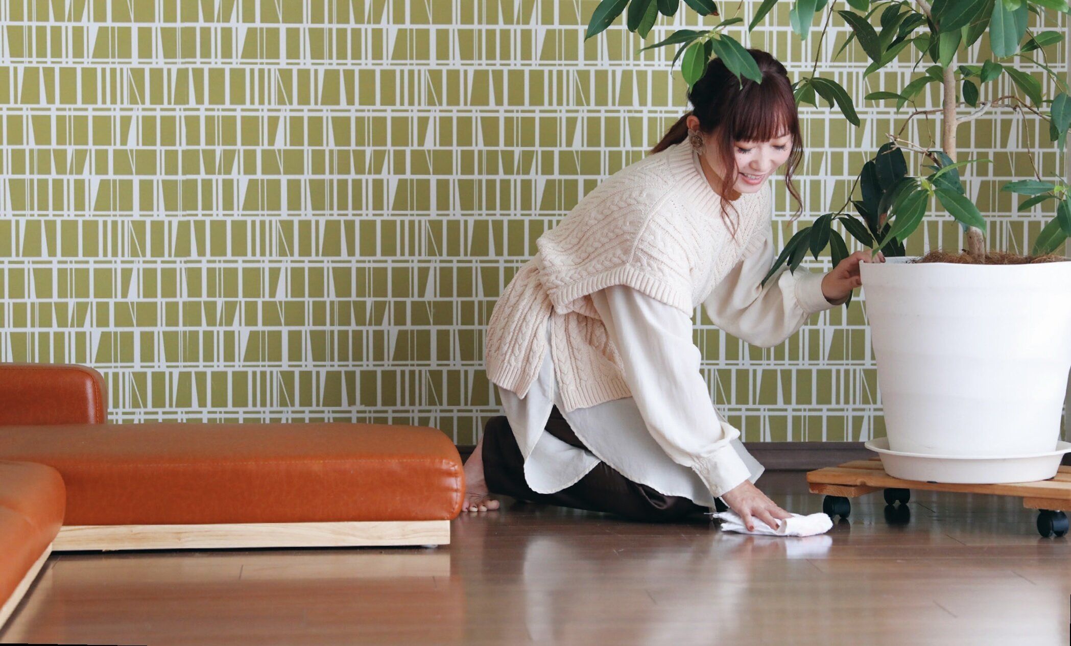<重い物はキャスターつきの台にのせて掃除しやすく>