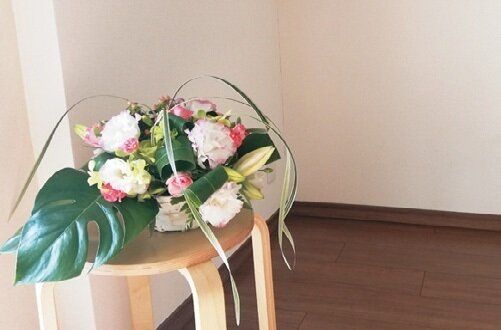 <最近始めたフラワーアレンジメント。シンプルな部屋がぱっと華やぐ>
