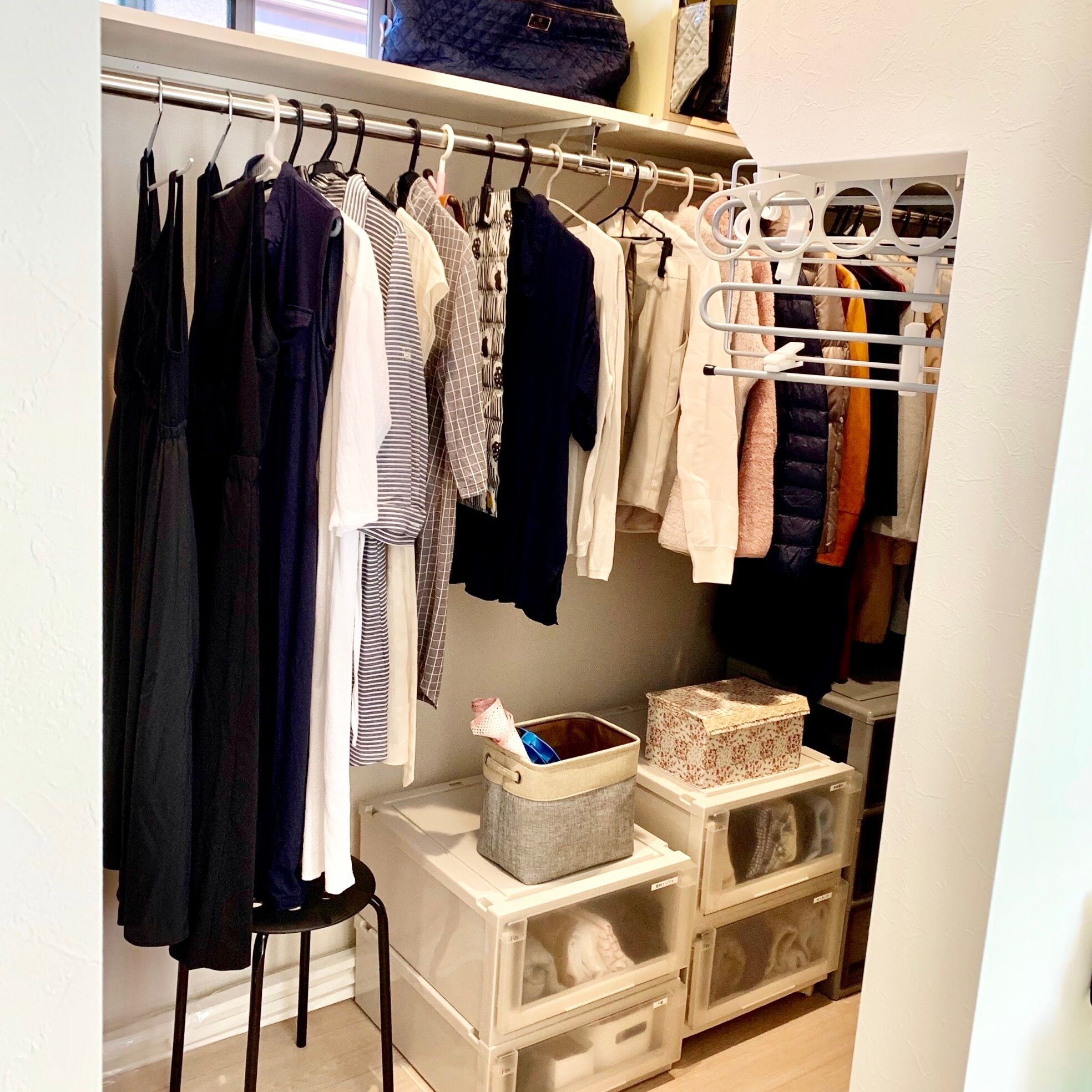 今の自分に合った服かどうか、1年以上着ていない服はないか、そのように残したい服だけに絞ればゆとりのあるスッキリなクローゼットになると思います。
