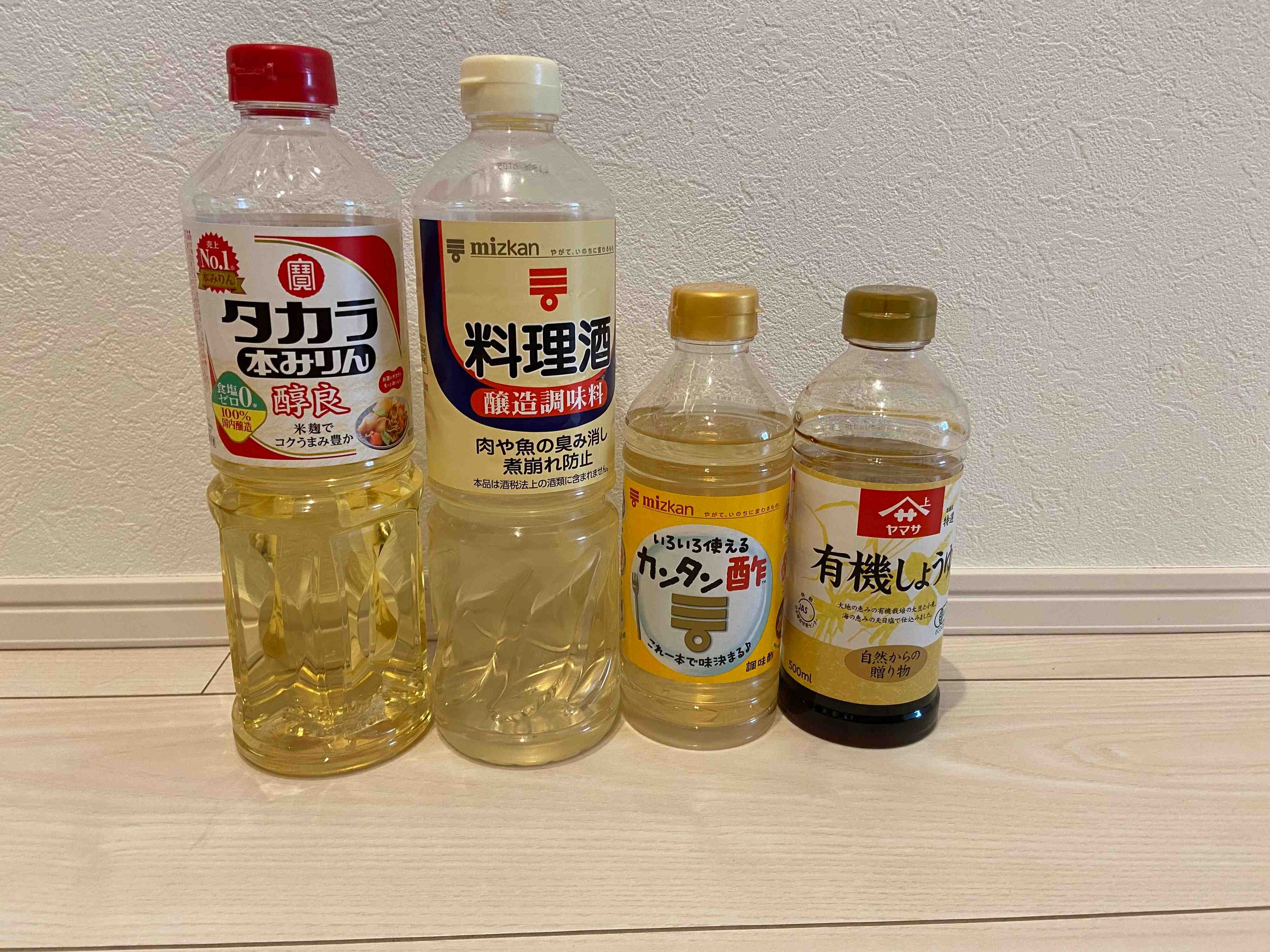 自炊するようになってからは、醤油・みりん・砂糖・塩・料理酒をスタメン活用。