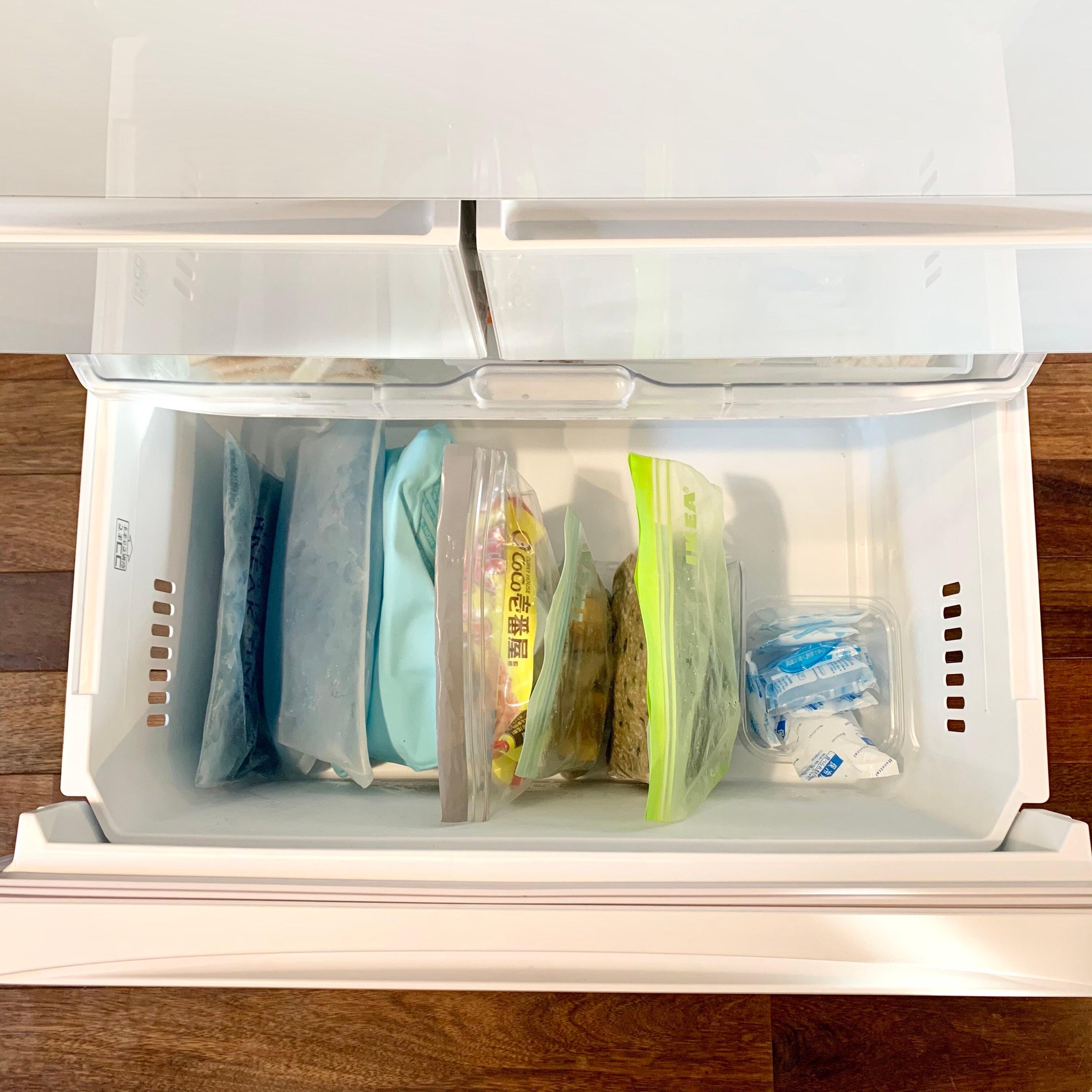 どうしても食材が埋もれてしまいがちな冷凍庫。これを使うと食品が埋もれません。ポイントは上から見ても全部見える工夫をすること。