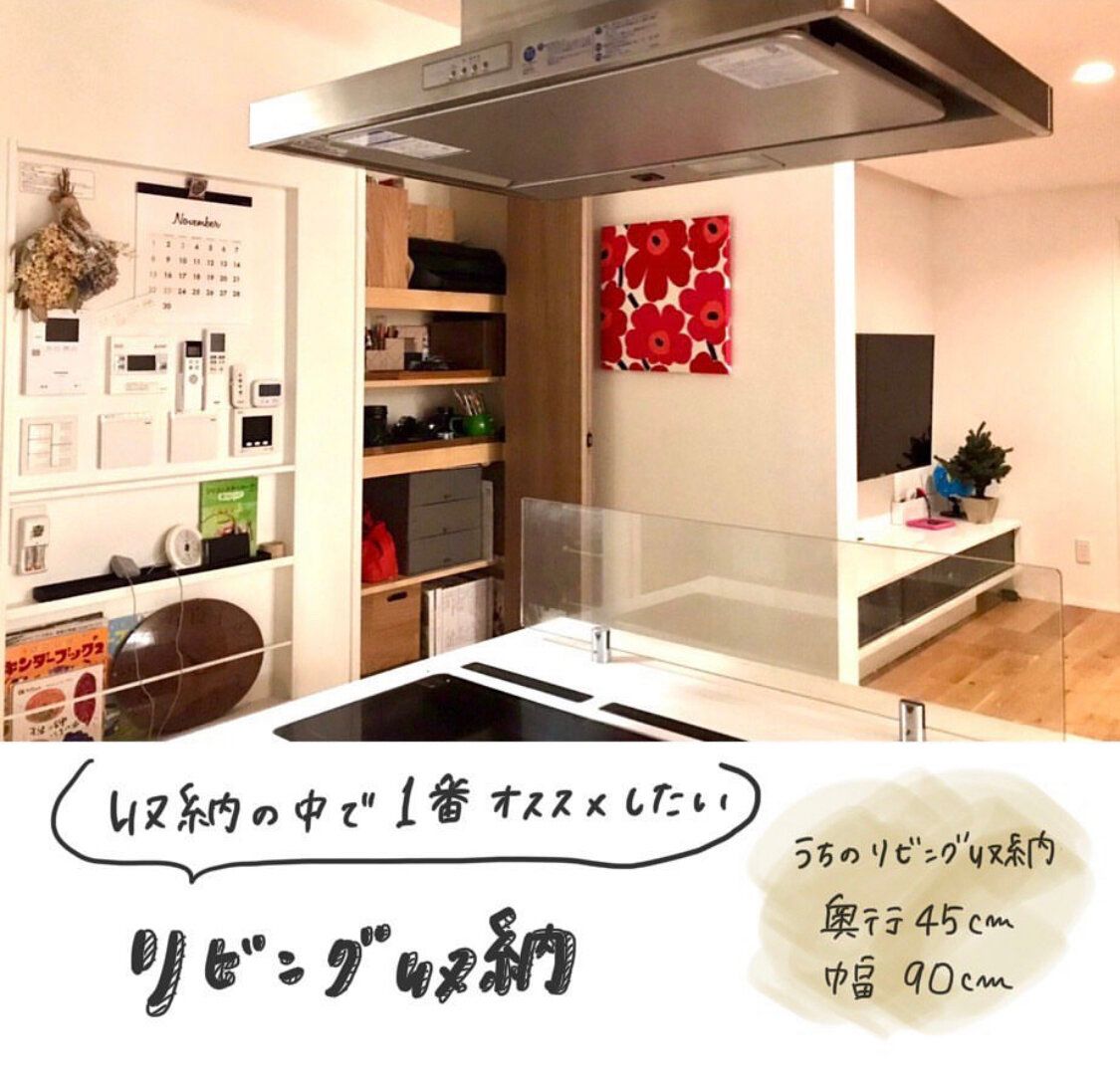 我が家は、図面上では奥行き45cm(実寸は33cm)のリビング収納です。