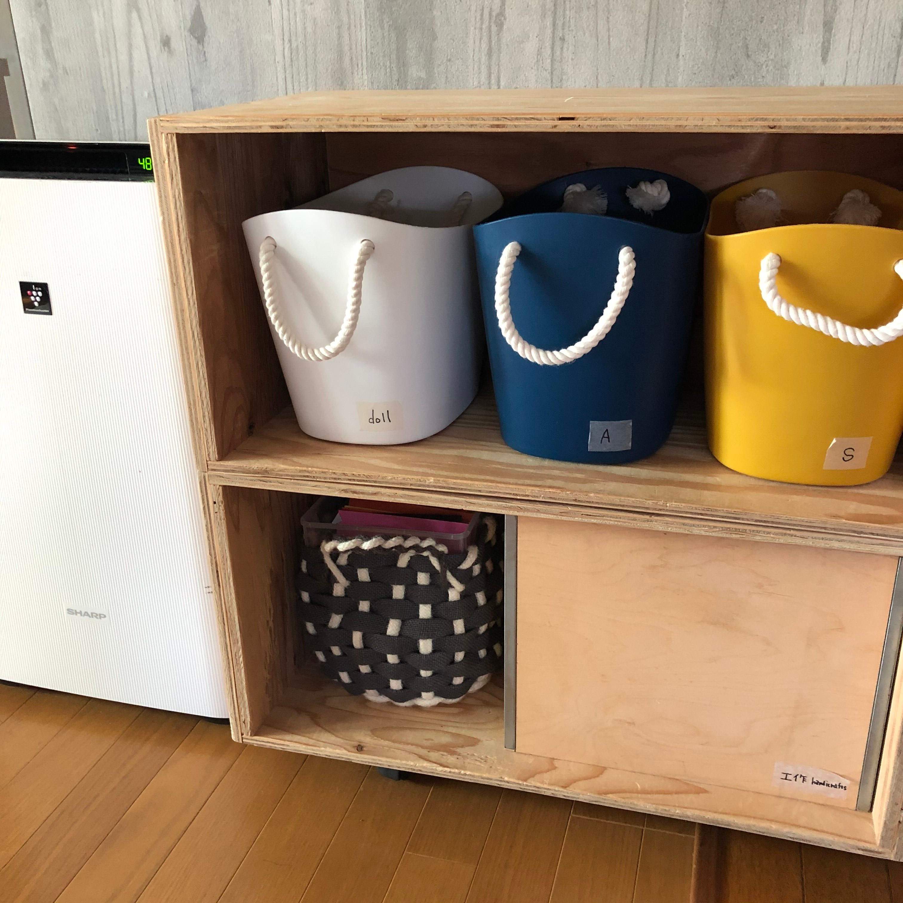 二軍、三軍のものは蓋付きのケースに入れて、子ども達が遊ぶスペースの近くに置きます。