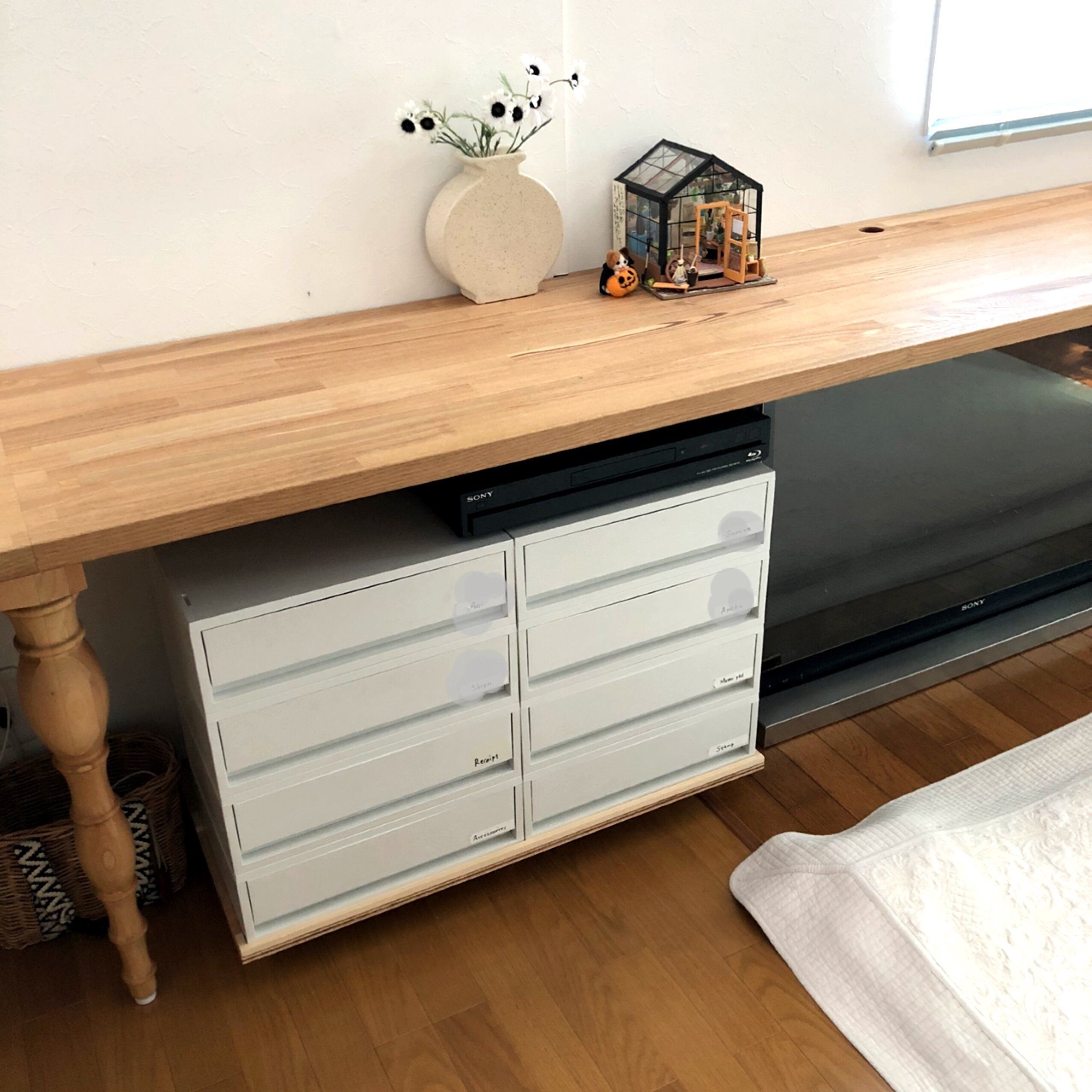 いわゆる一般的な書類用小引き出しよりも、ゆとりを持って大胆にスペースを作ってしまう方が、気長に処理できますし、イレギュラーな大きな物が入り込んでも慌てず収めることも可能です。「何も出ていない=リビングはスッキリ」ということになります。