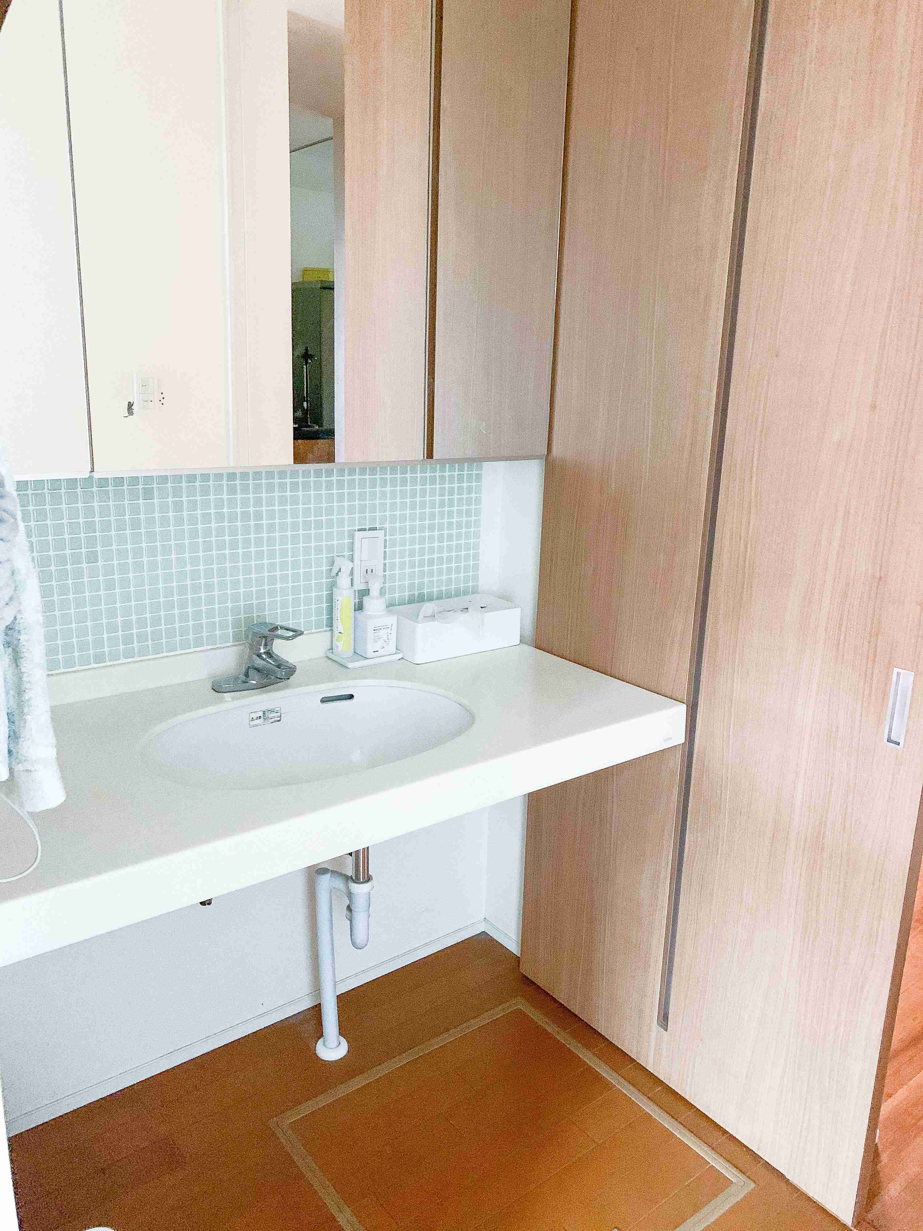 わが家は、キッチンのカウンター、洗面台の下に、敢えて最初から収納スペースをつくりませんでした。収納用品をつけたして置かないようにもしています。