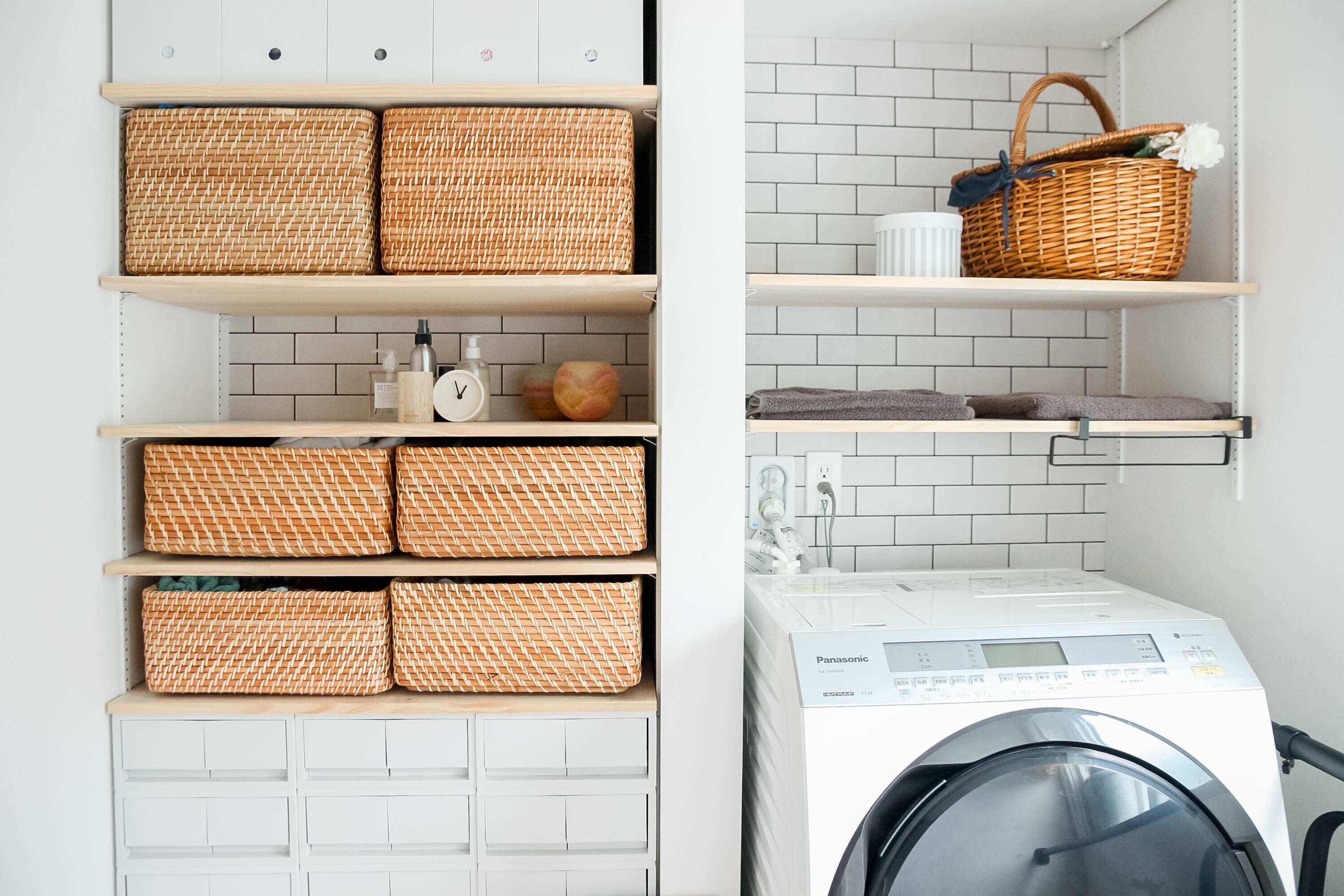 平置きする収納には、ラタン(無印)・ボックス(セリア)・バスケット(ニトリ)が◎。