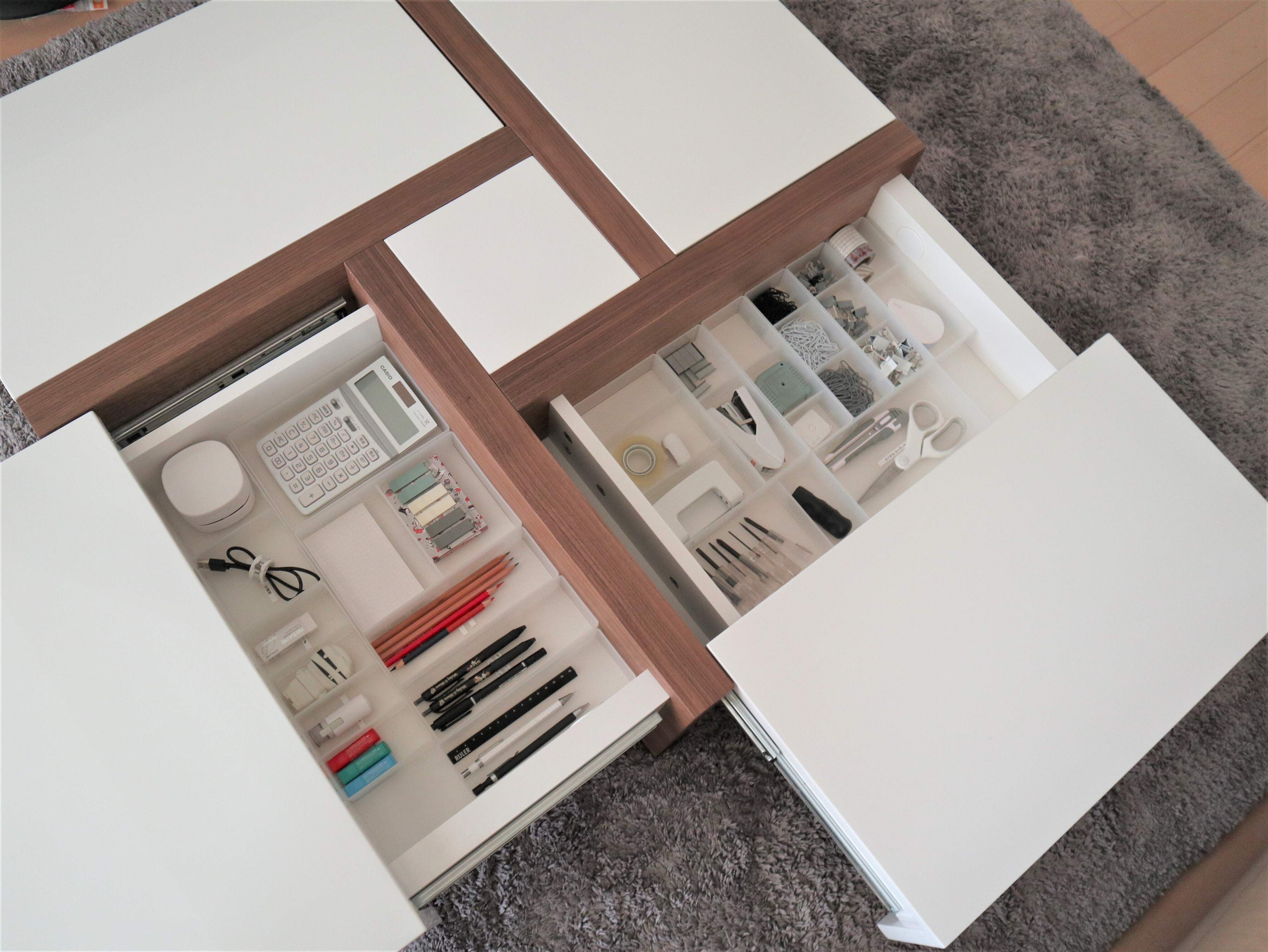 引き出し収納がない!というかたには、レターケースやスタッキングできる引出し式収納がオススメです。最近ではテーブルに両面テープで引出しをつくれる商品も登場していますので、自分好みのタイプを見つけてみてください。