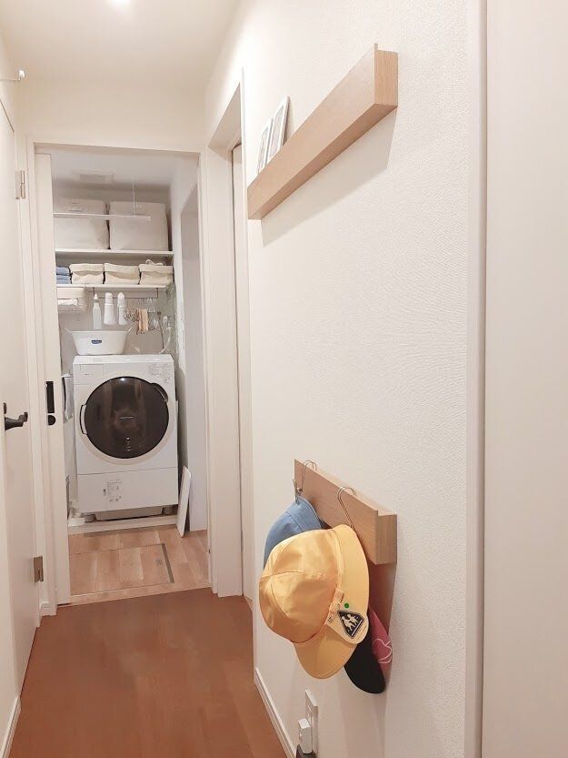 玄関から手洗いにいくまでの動線に収納をつくった例